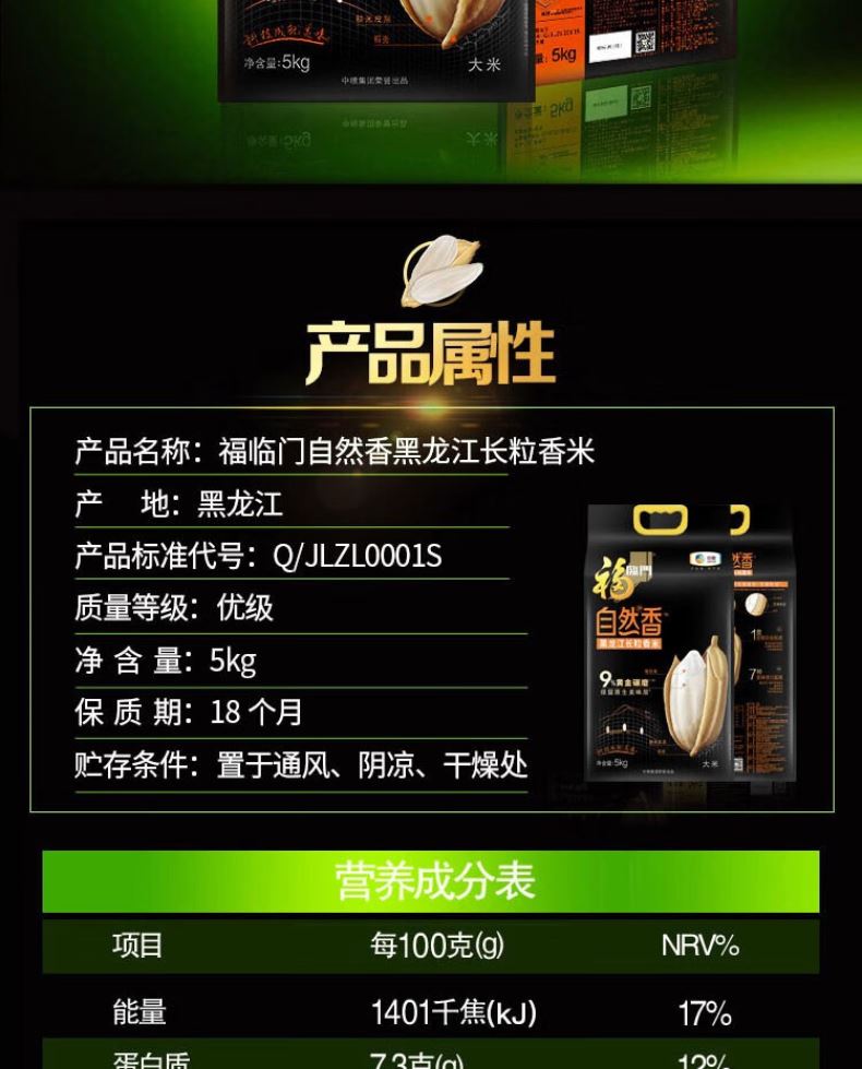 净含量:5kg 条形码:6944910318210 开票税率:9% 产品卖点: 黑土核心产区,央企严选:黑龙江五常地理标志产区,寒地黑土 + 天然水源灌溉,中粮 26 道工序精控,一级米质安全可追溯。 自然香浓,弹润回甘:9% 黄金碾磨工艺保留原生美味层,米粒纤长饱满,蒸煮满室飘香,软弹不粘,冷饭不回生。 5kg 真空锁鲜,实用适配:真空包装防潮防虫,保质期 18 个月,家庭日常、节庆囤货与企业福利采购皆适宜。