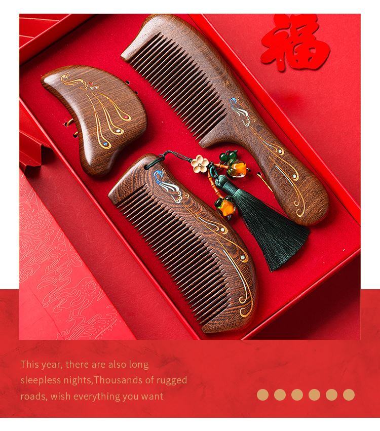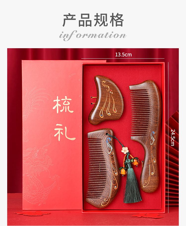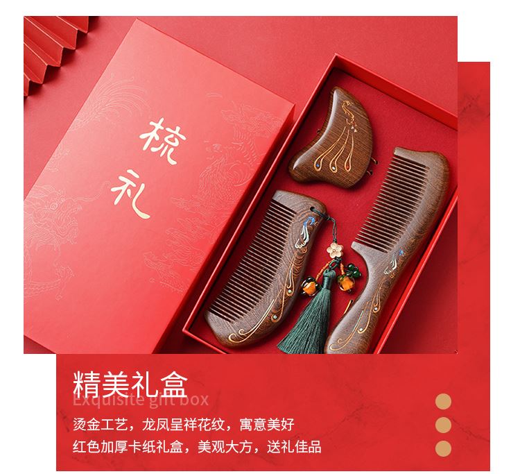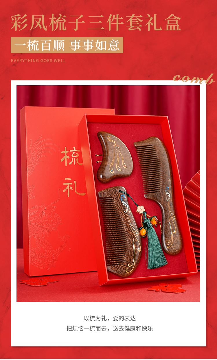 编码:W4901 产品:檀木梳子礼盒+礼品袋 注:此款产品如图,无小花束