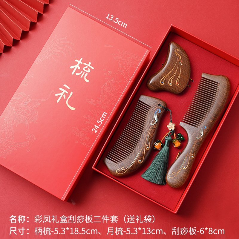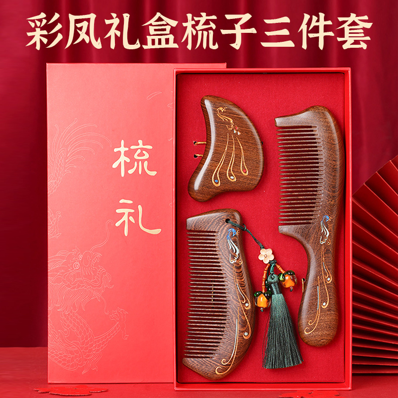 三八节檀木梳子生日礼物实用创意伴手礼年会礼品套装W4901
