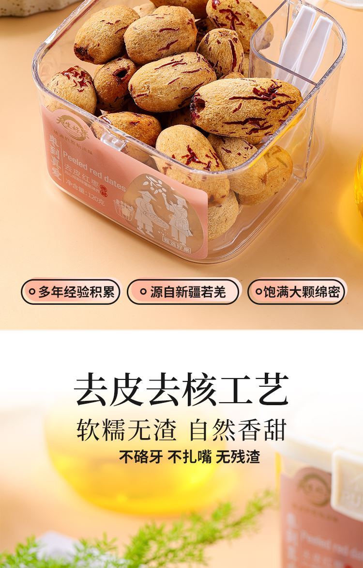 天生好果去皮红枣120g罐装新疆若羌红枣去皮去核即食红枣零食