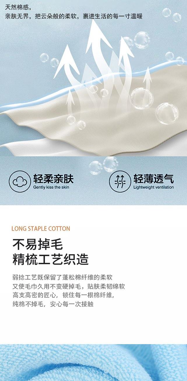 料:纯棉 规格: 毛巾:33*73cm*2条 浴巾:70*140cm*1条 重量:毛巾:85g;浴巾:340g 1、精密锻档工艺,品质融入每一个细节,活性印染 2、纯棉材质,柔软顺滑,软绵绵的蓬松感,绒毛疏松多孔 3、吸水性好,简约设计,美观大方