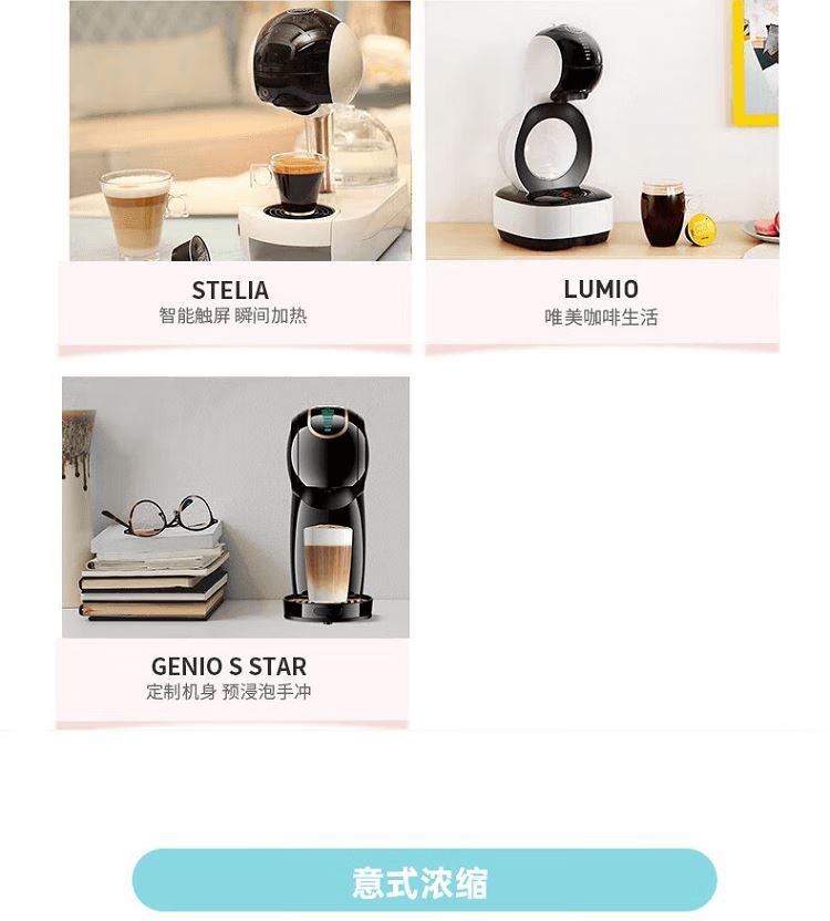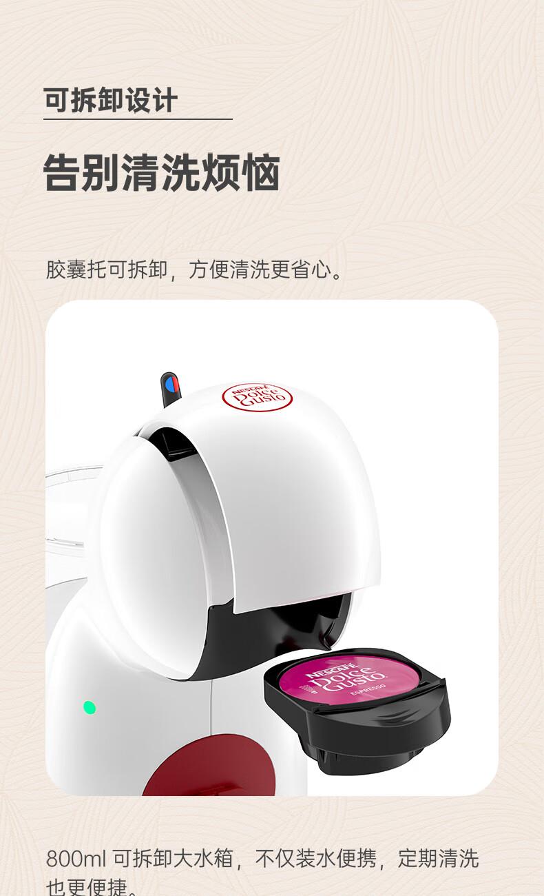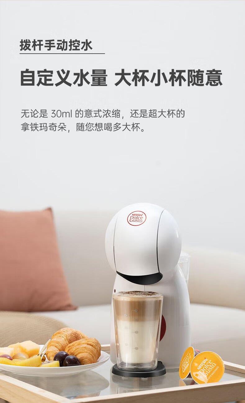 产品:雀巢多趣酷思Piccolo XS 胶囊咖啡机 产品型号:小星星单机 水箱容量:800ML 颜色:白色系 压力:15bar 强劲高压