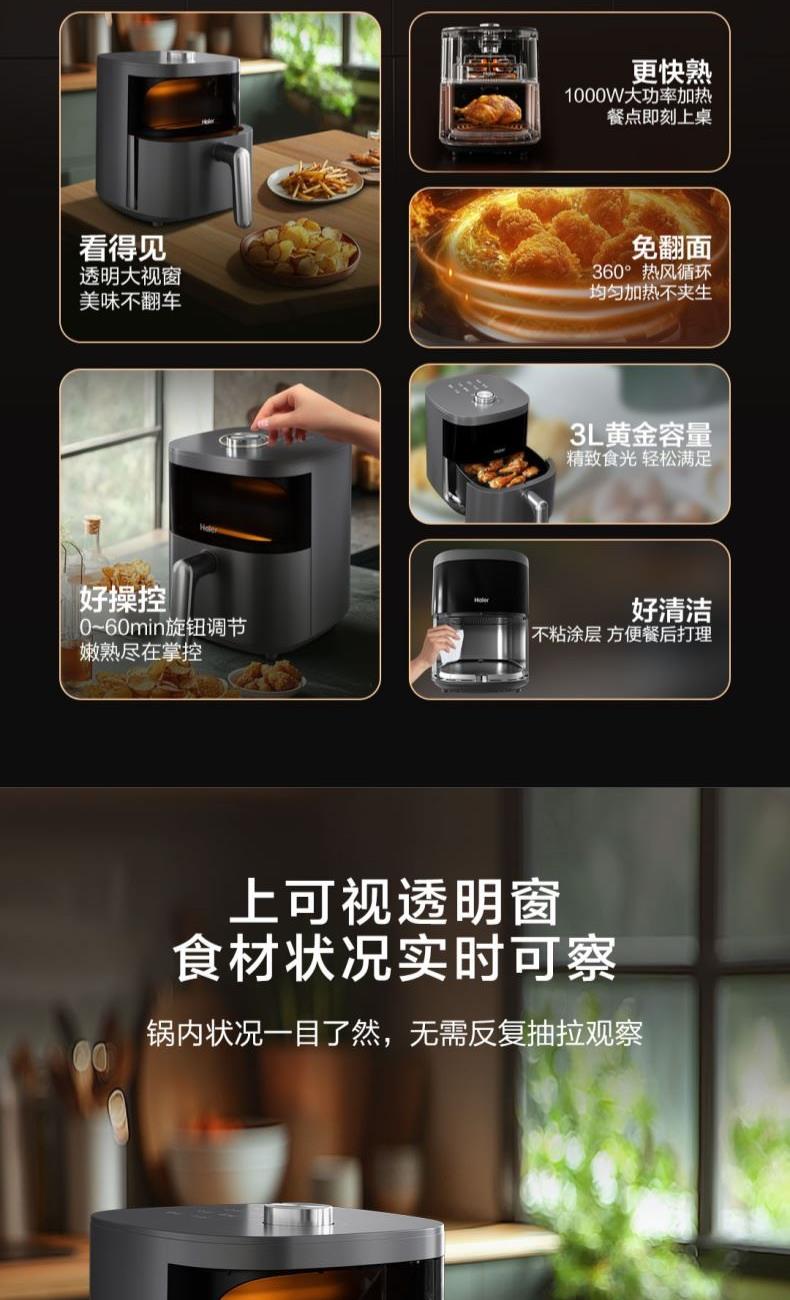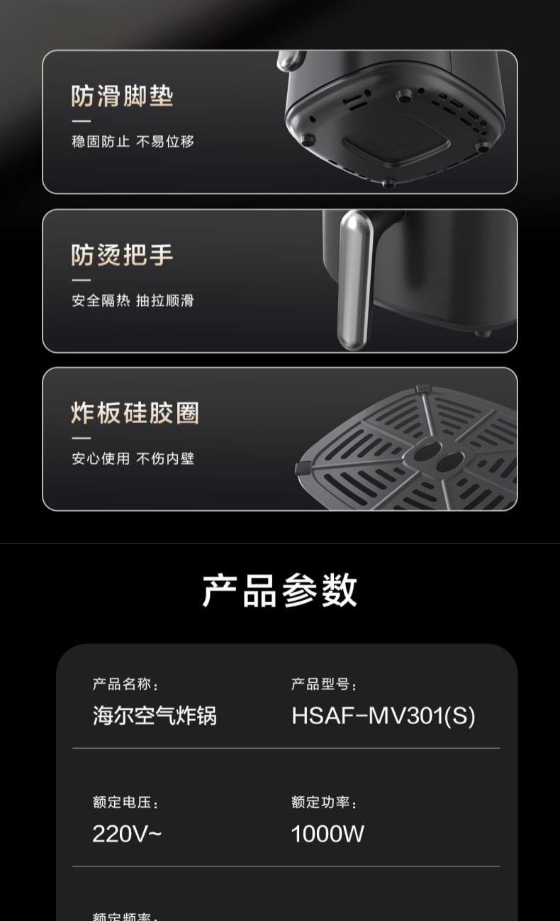 海尔空气炸锅3L(机械款)HSAF-MV301(S)