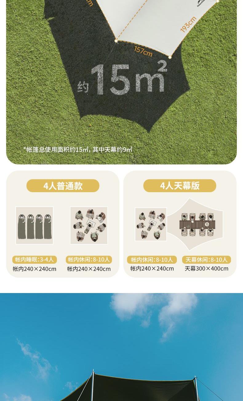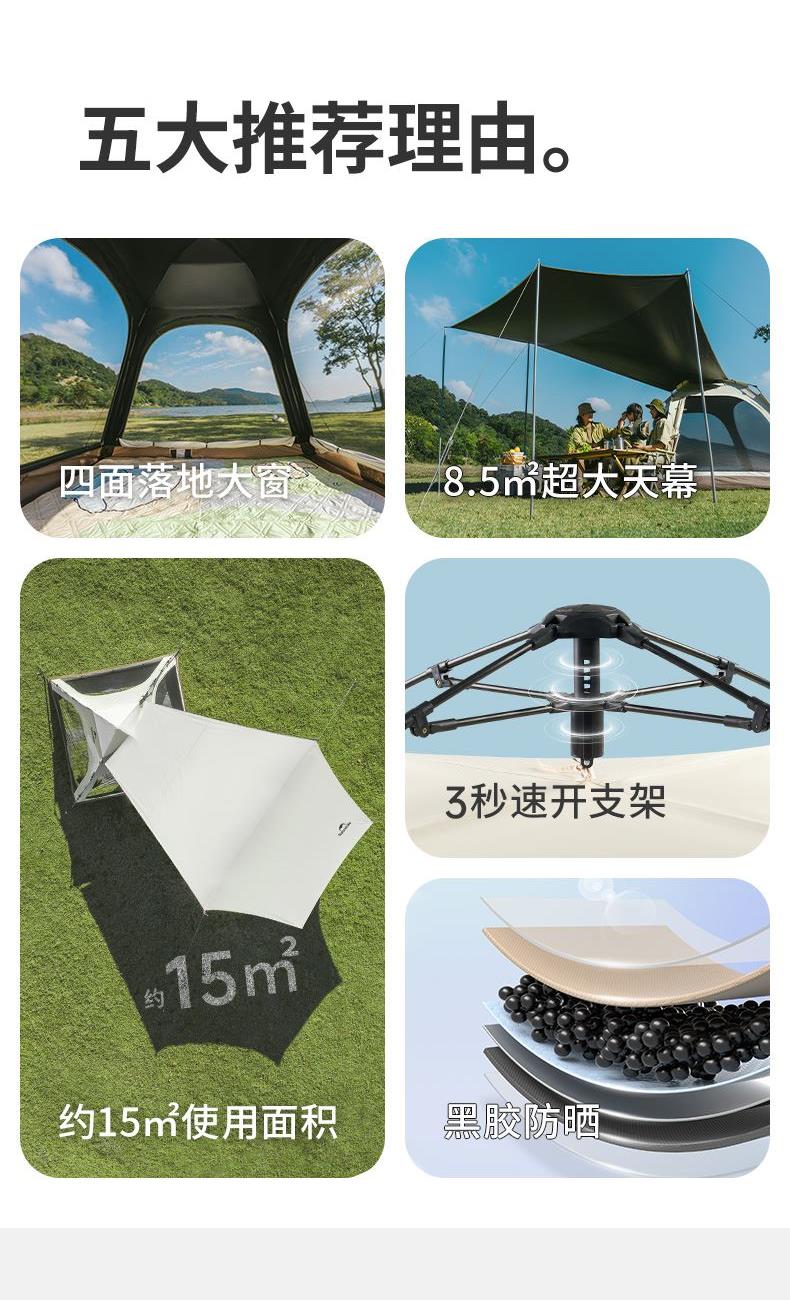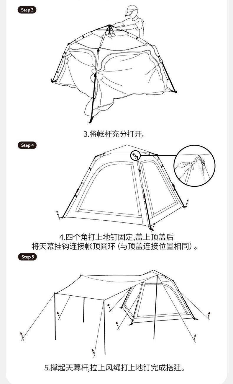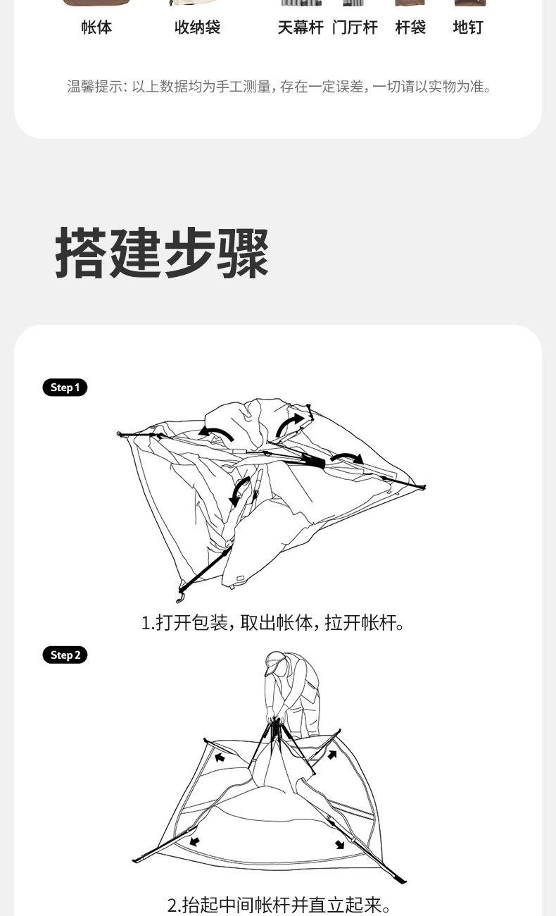 橡木棕/3人小号 外帐:150D牛津布黑胶 底帐:150D涤纶牛津布 帐杆:玻杆 3人小号:重量:约4.3kg尺寸:200x200x145cm收纳:73x21x15cm
