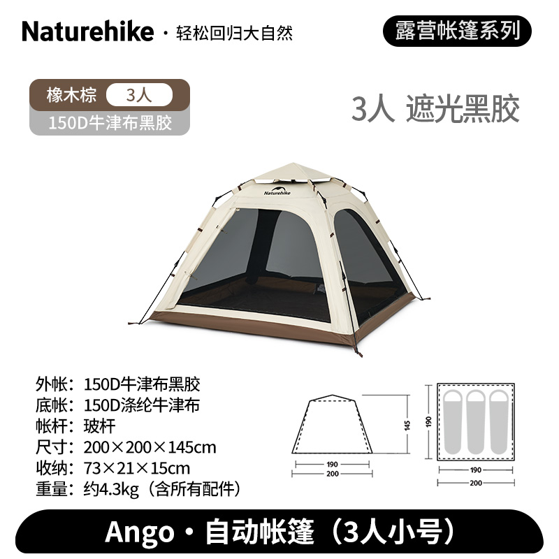 Naturehike挪客Ango自动帐篷橡木棕/3人小号