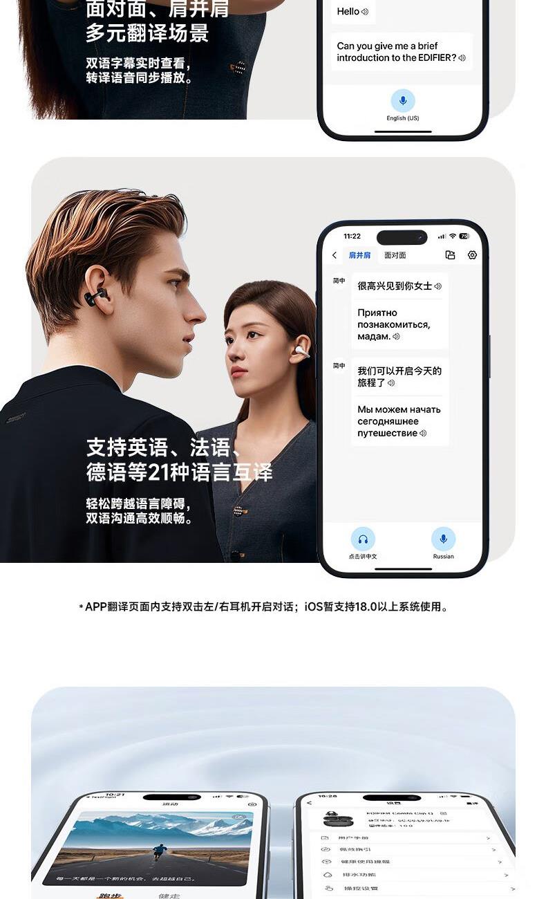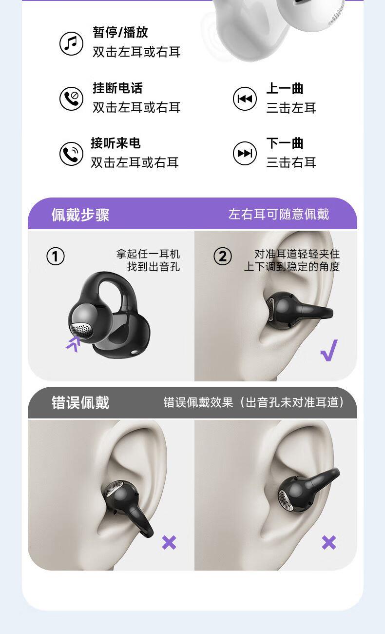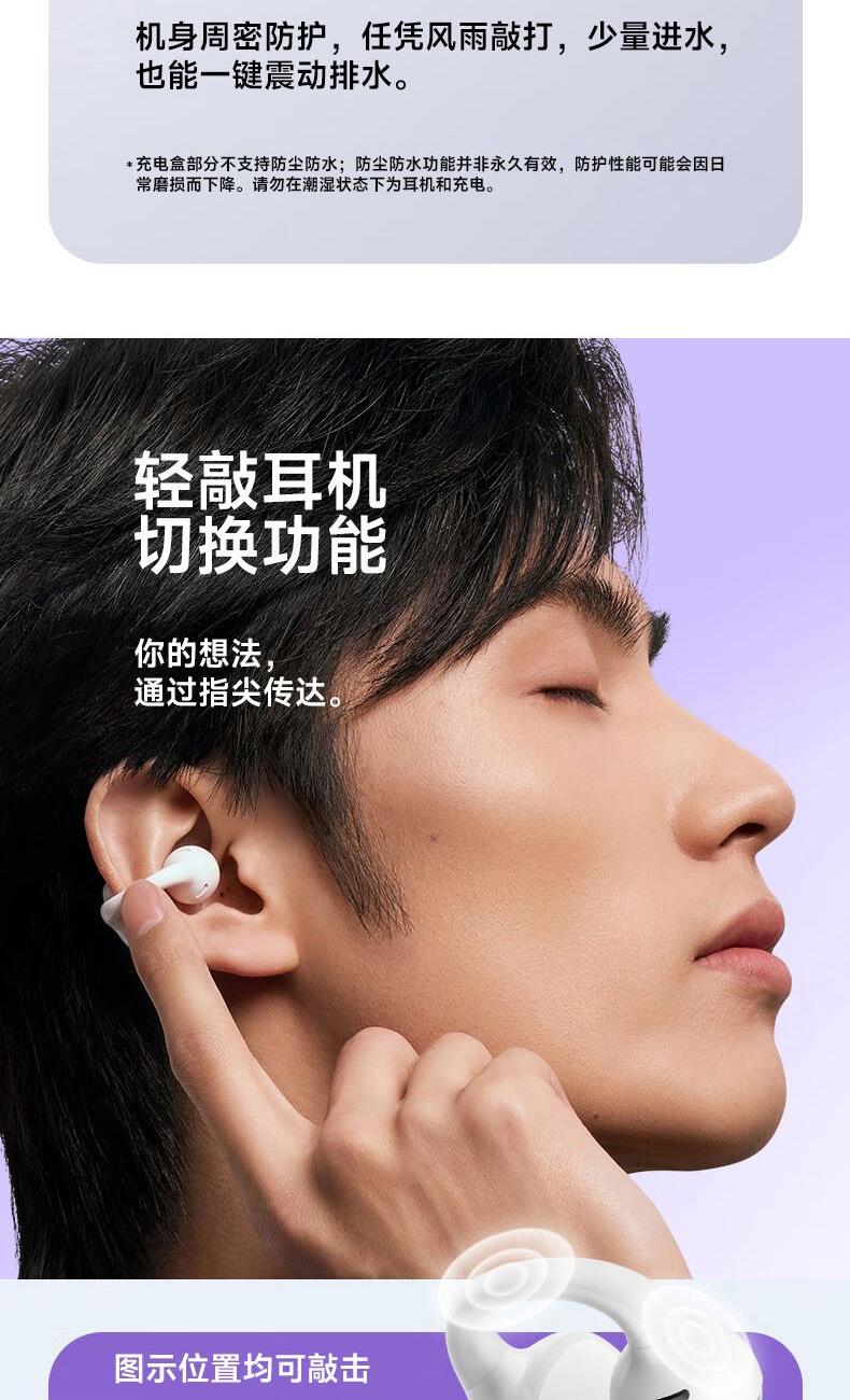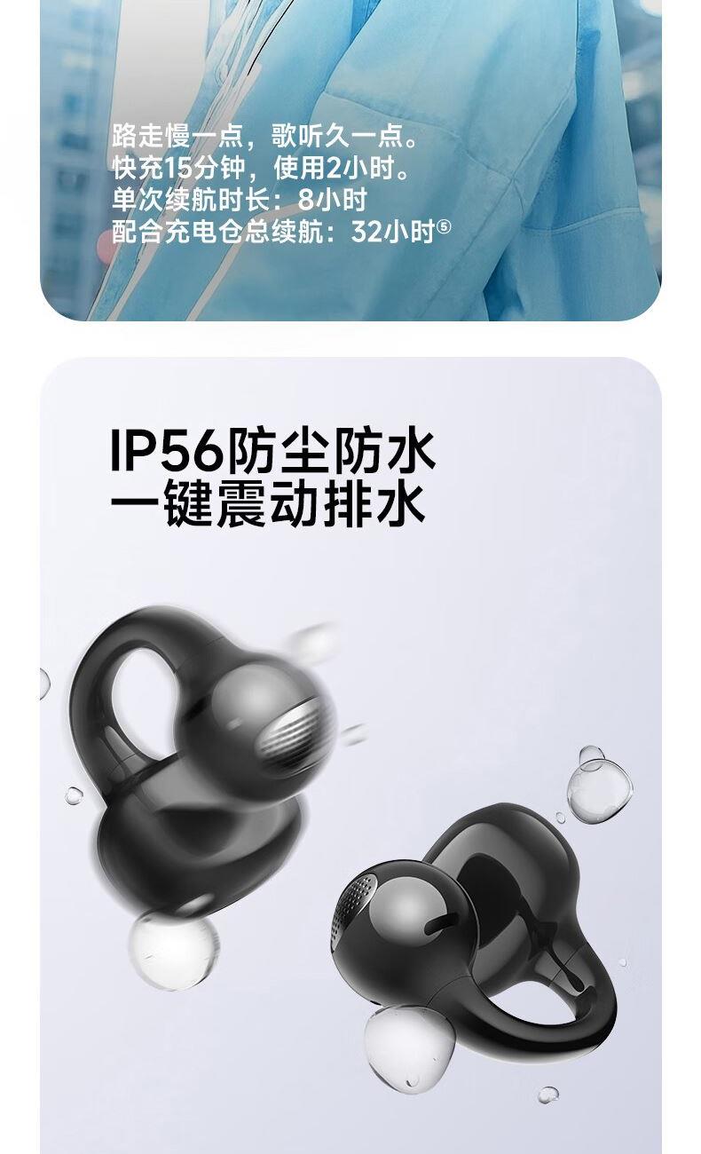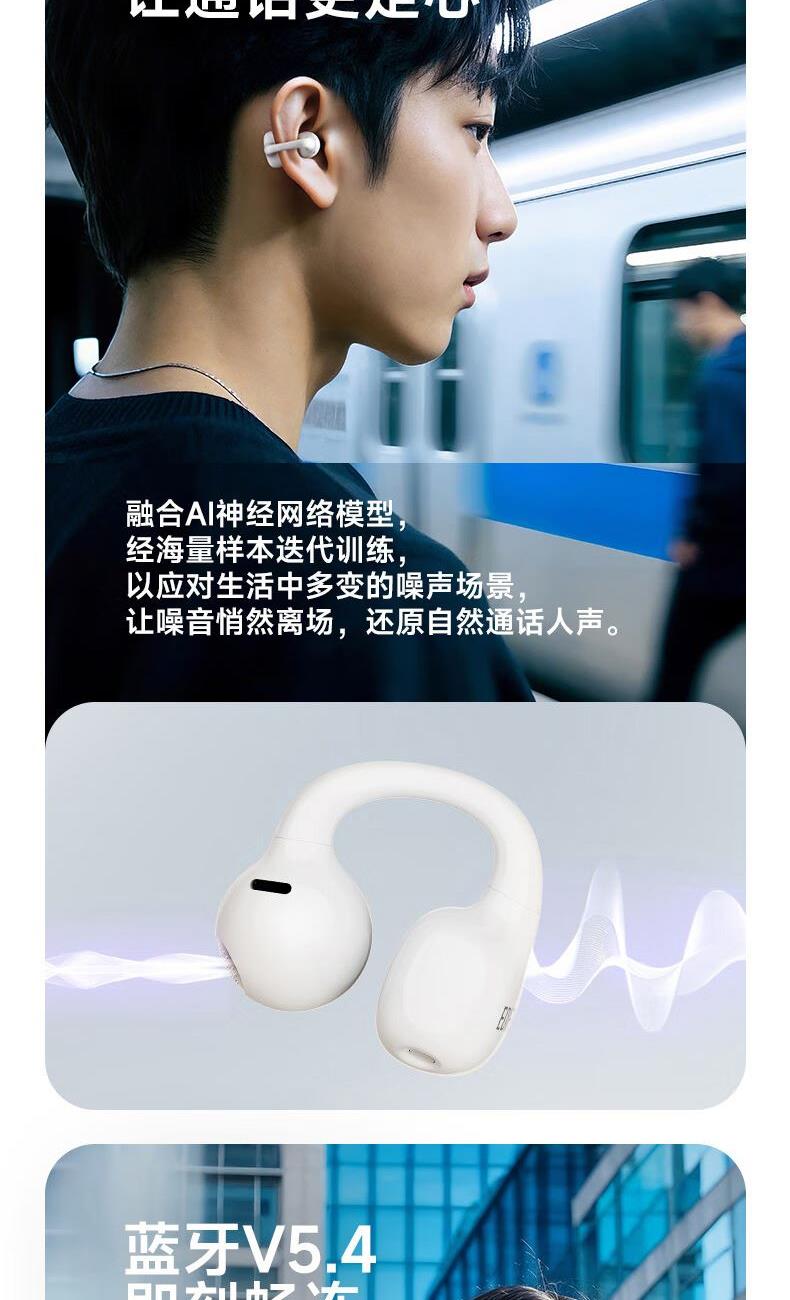 12mm大尺寸镀钛动圈 不分左右,即戴即听 定向传声,减少漏音 IP56级防尘防水 双设备连接,畅听无间 同声传译,沟通无界 蓝牙版本:V5.4 工作时长:约8h+24h 频响范围:20Hz-20KHz 重量:145g 包装尺寸:100×38.5×100mm