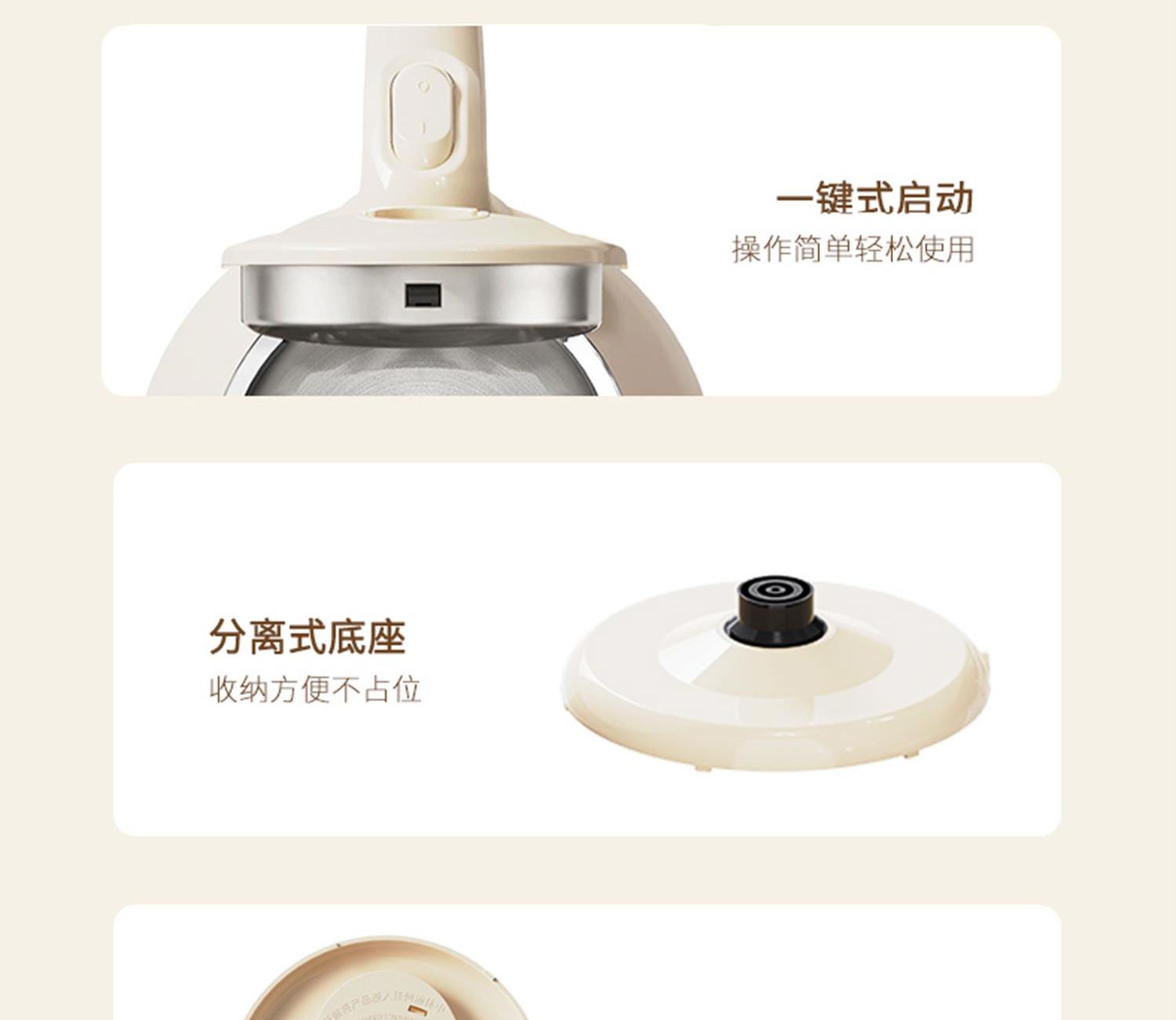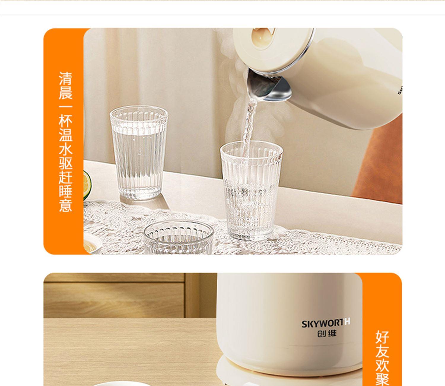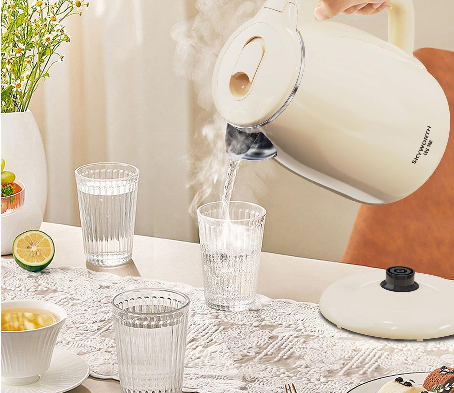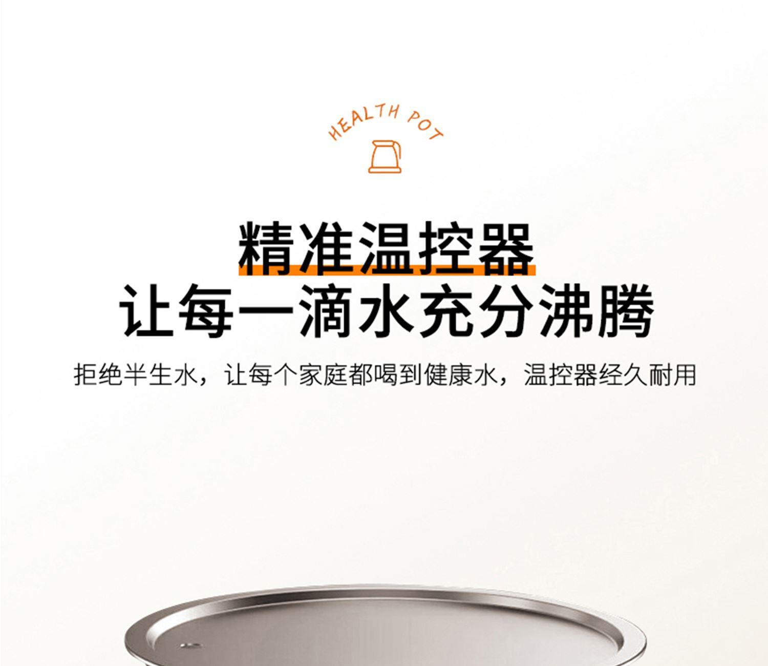 额定电压:220V~ 额定频率:50Hz 额定功率:1500W 容 量:1.8L 产品材质:壶盖:PP+不锈钢;壶嘴、壶胆:不锈钢;外壳、底座:PP 1、304不锈钢材质,用心选材; 2、1.8L大容量,居家之选,满足3-6人使用; 3、1500W大功率,快速沸腾,即烧即饮 4、优品温控器,控温,经久耐用; 5、不锈钢过滤壶嘴,滤出杂质; 6、双层防烫机身,保温不烫手。