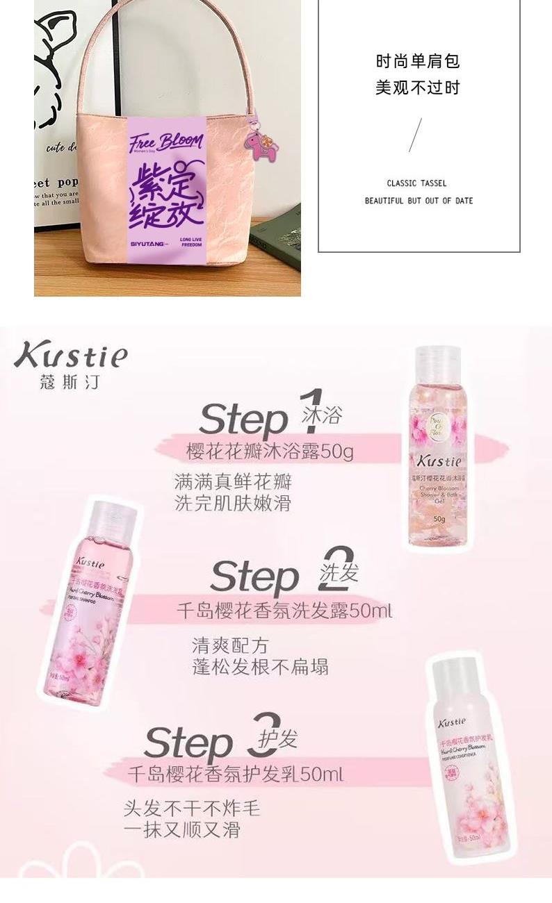 礼盒配制:1.时尚单肩包*1 2.遮光眼罩*1 3.丝缎枕套*1 4.蔻斯汀樱桃花瓣沐浴露*1 5.蔻斯汀千岛樱花洗发露*1 6.蔻斯汀千岛樱花护发素*1 7.智能计数跳绳器*1 8.马上有钱小挂件*1 9.发圈*1 包装方式:opp袋整