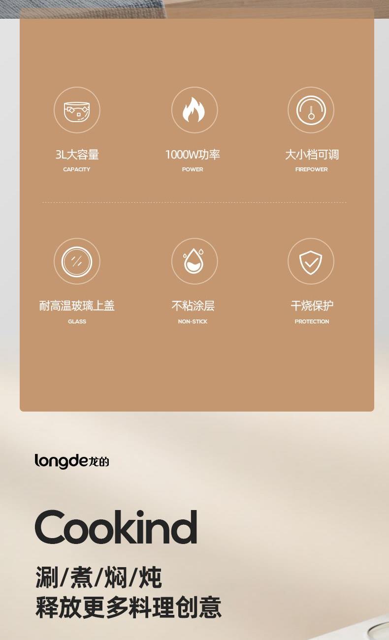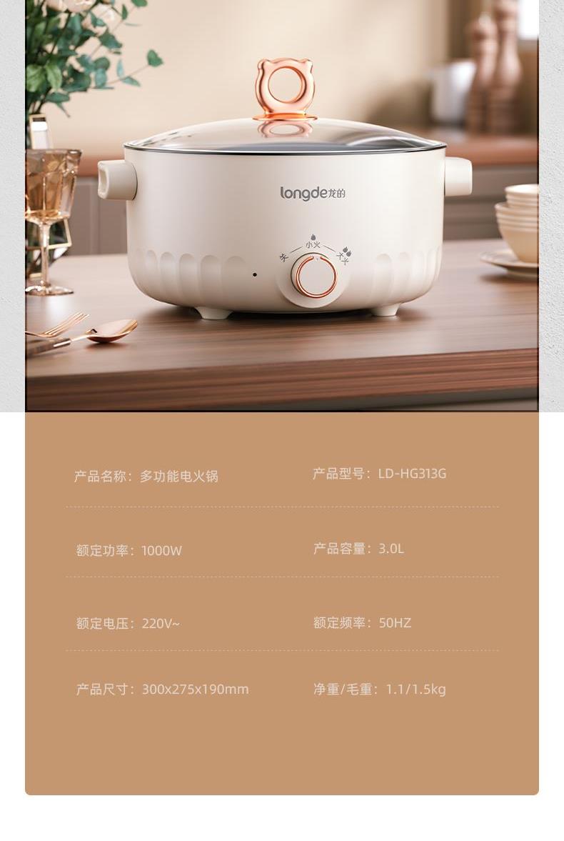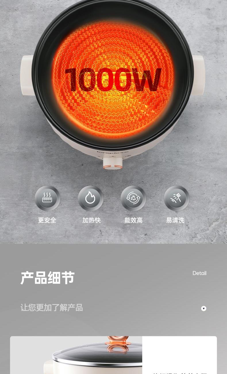 额定功率:1000W 产品容量:3.0L 额定电压:220V~ 产品频率:50Hz 产品净重:1.1kg 产品毛重:1.4kg 整箱重量:17.1kg 装 箱 数:12台/ 双层防烫,食品级不粘内胆 可视烹饪不锈钢包边耐高温玻璃上盖 功率可调两档功率可调 多重安全防护优质温控器,干烧保护