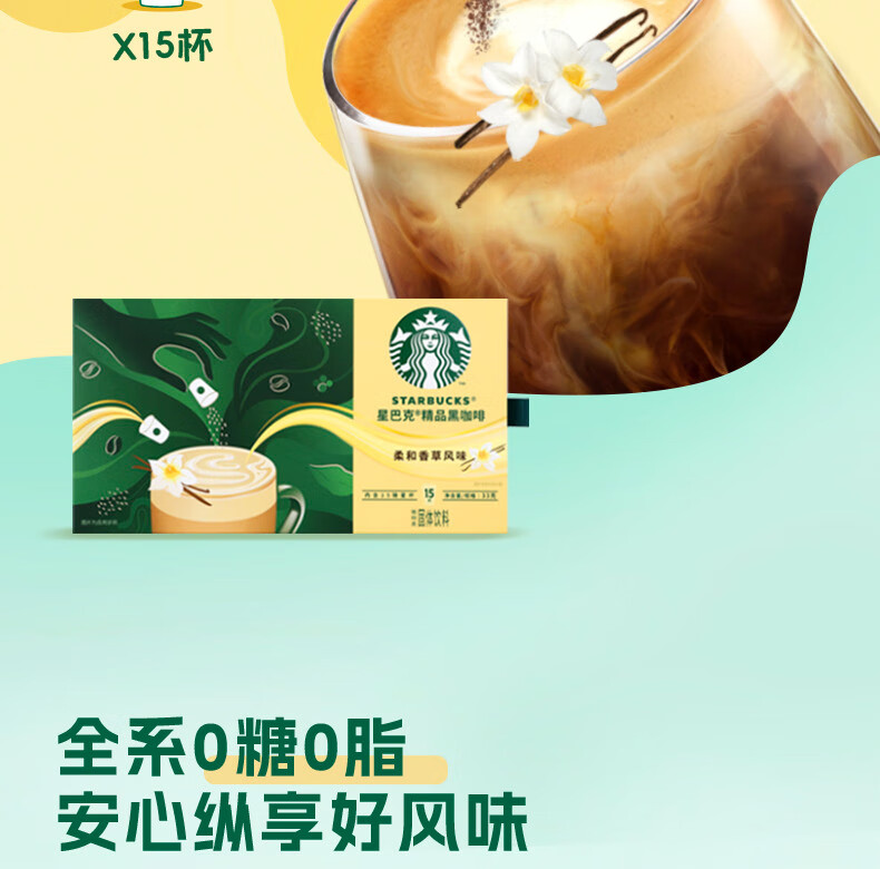 星巴克随星杯3.0系列柔和香草风味2.2g*15颗冻干黑咖啡