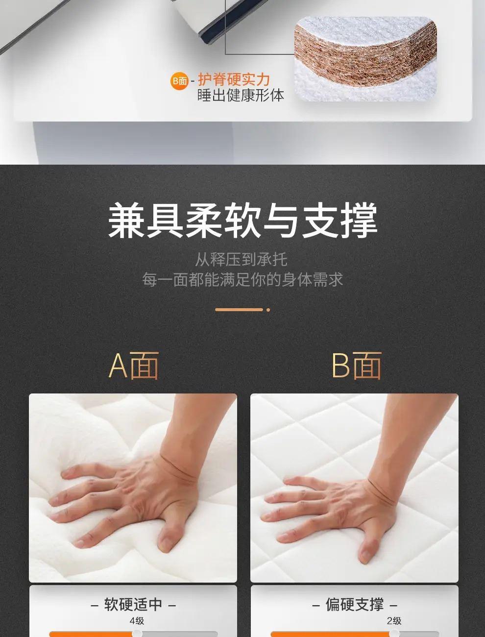 4.双面可睡,睡感随心:A面柔软贴合,B面护脊承托,无论是贴合感还是支撑感,都是可以满足。