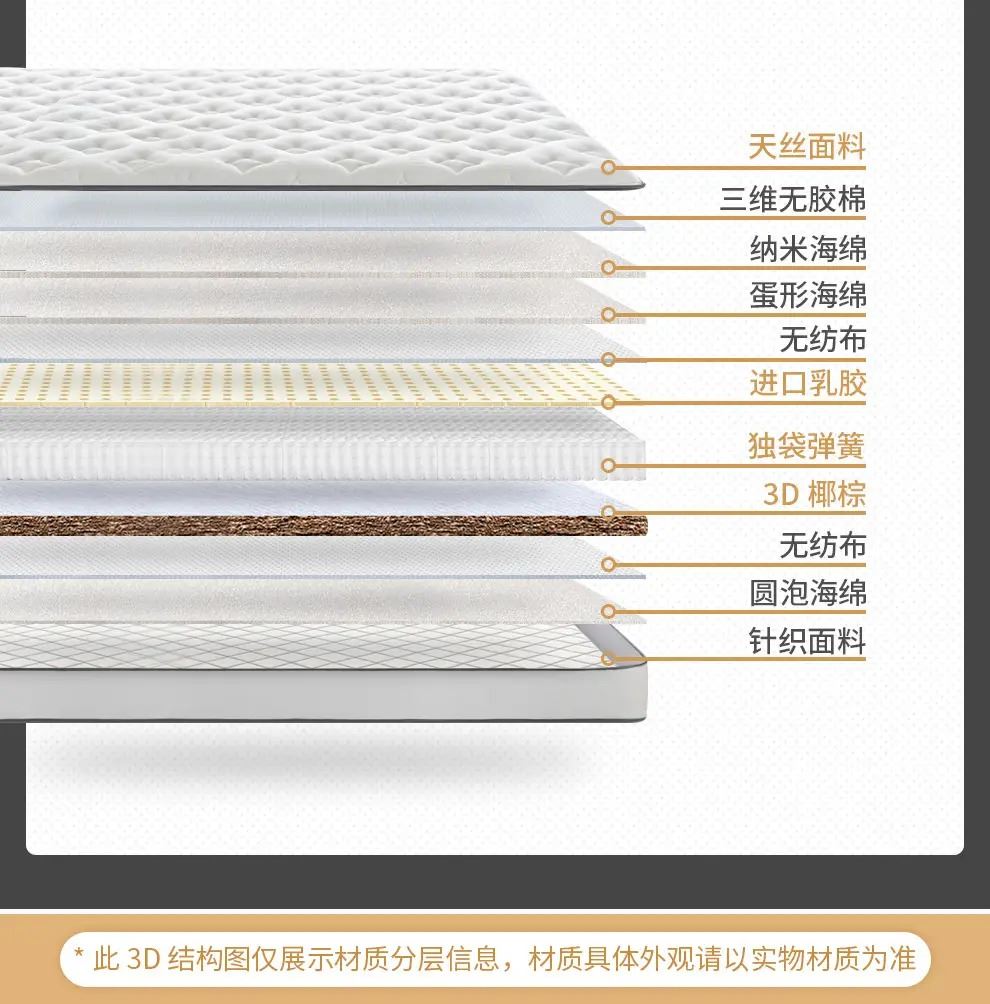 核心材质:进口天然乳胶、3D椰棕