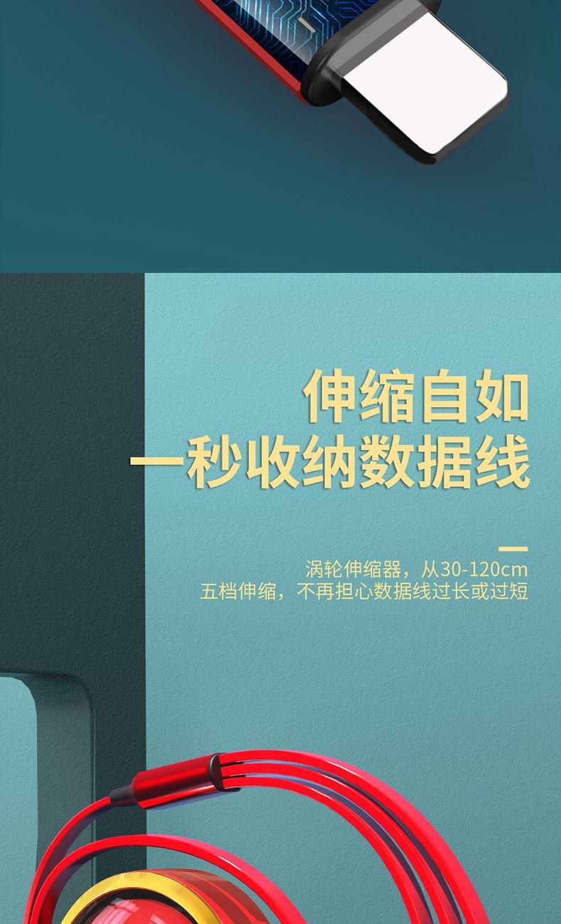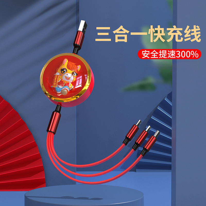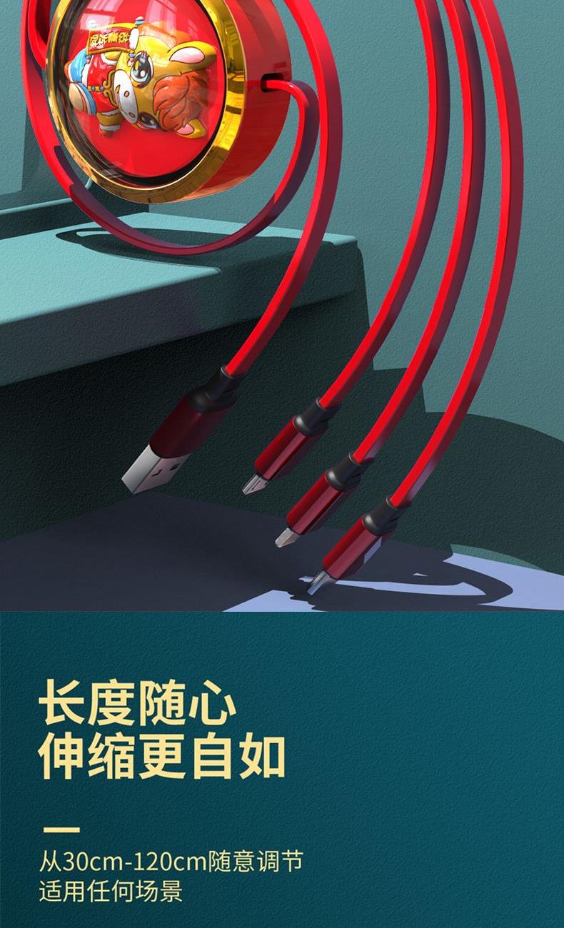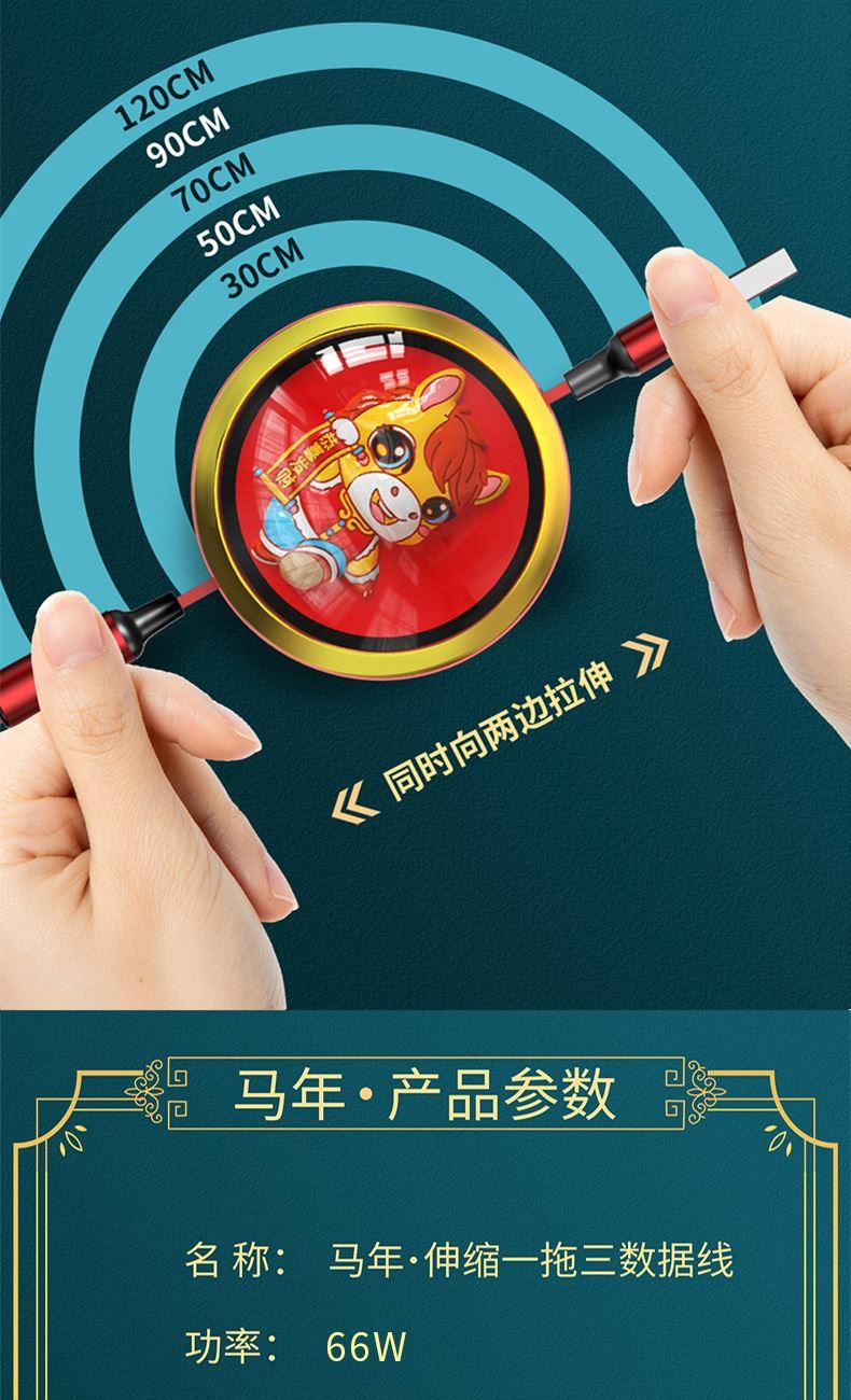 HYUNDAI马年伸缩一拖三数据线YH-NB014