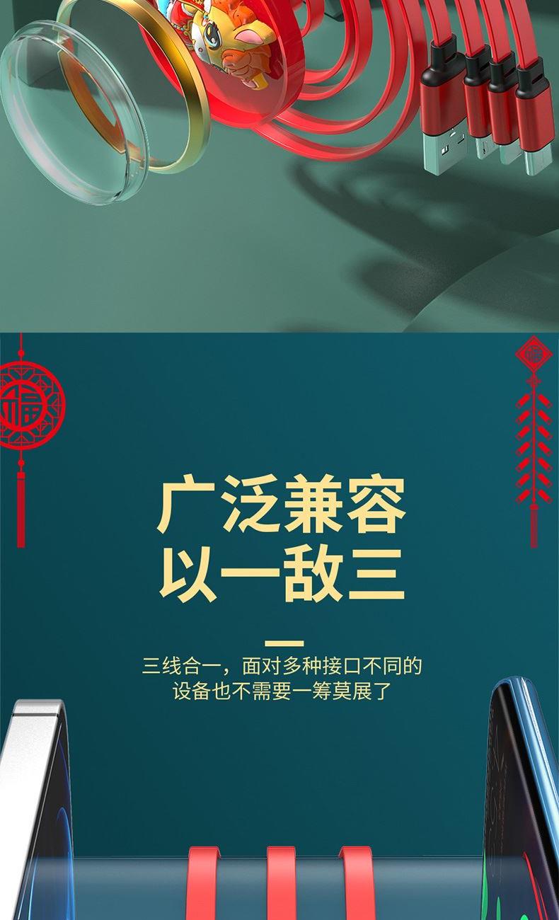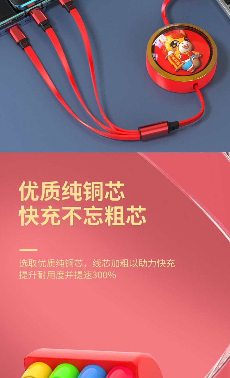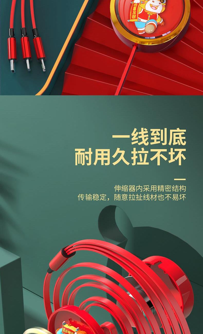 HYUNDAI马年伸缩一拖三数据线YH-NB014