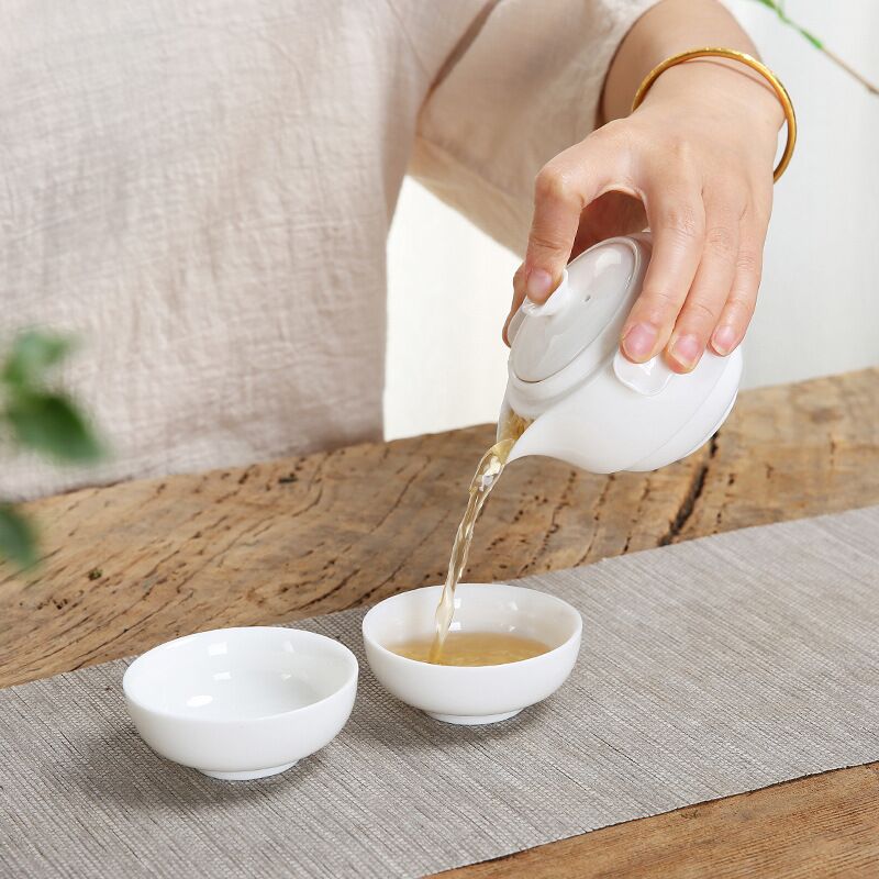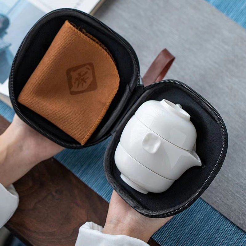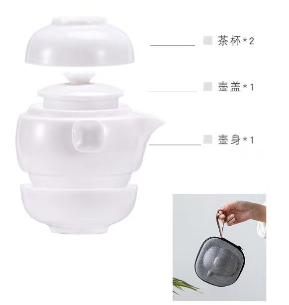 配制:1壶2杯 1旅行袋 1茶巾 规格:茶壶:直径9.5*H7cm 杯子:直径7.5*H3c 材质:羊脂玉瓷 推荐说明:两个杯子可与壶上下重叠组合。方便携带,简单实用。高雅时尚。简洁大方。羊脂玉瓷,瓷质细腻温润,触感舒适。似凝脂,如美玉。在阳光照射下,呈半透明羊油状,洁白滋润,故称羊脂玉,乃瓷中佳品。塑压布包,时尚精致上档次。