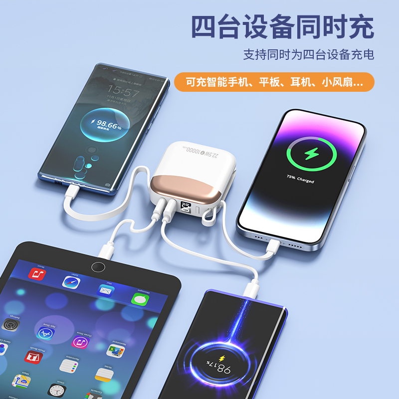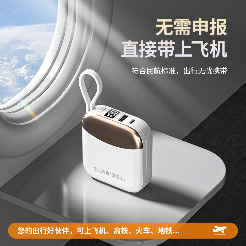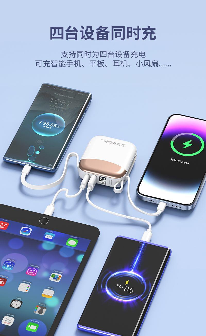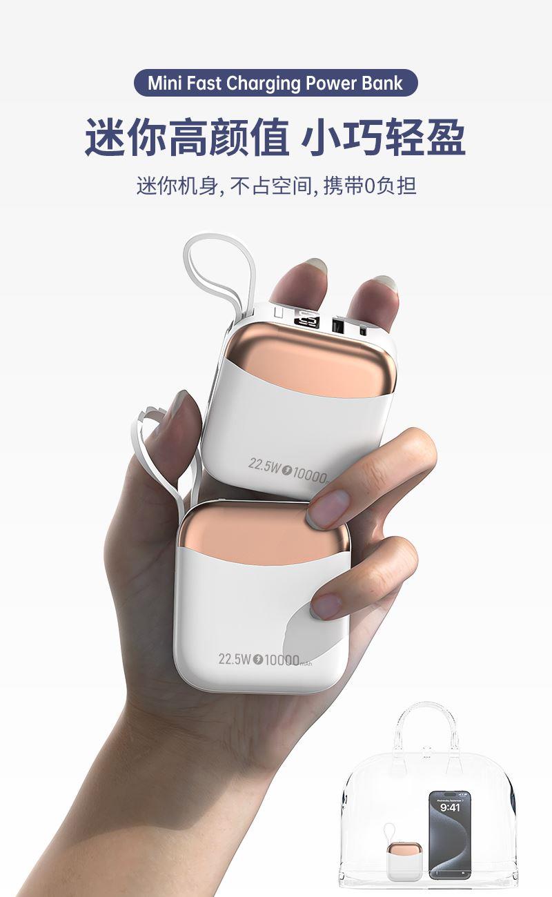 小身材,大容量,自带双线,迷你小巧快充,自带便携挂绳,一拎就走,可上飞机。
