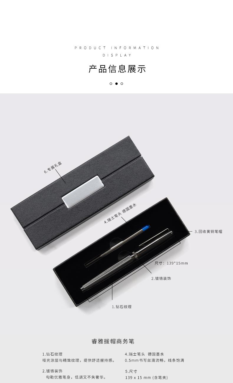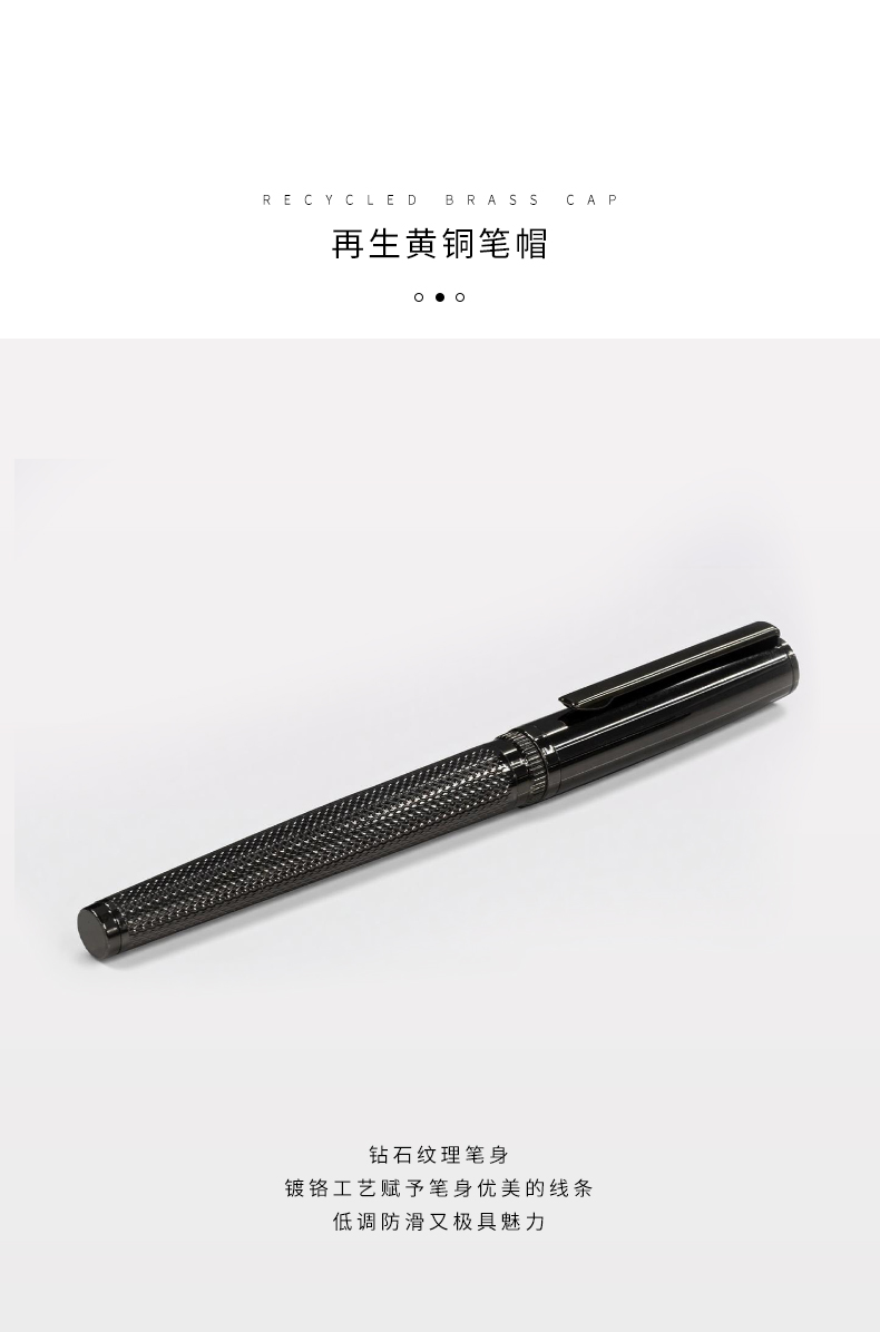 · 笔帽由回收黄铜制成,具备稳定的重量、舒适的手感,以及书写韵味 · 经典钢笔式拔帽设计,优雅又实用 · 笔身采用铬镀处理,其设计既彰显大气感,又充满奢华 · 配备德国帕克型凝胶油墨笔芯,书写流畅,告别晕染困扰 · 笔尖采用瑞士制造的TC圆珠笔头,优质碳化钨笔尖,耐磨出墨流畅 · 拥有国际RCS回收环保认证标志 笔尺寸:139 x 15毫米