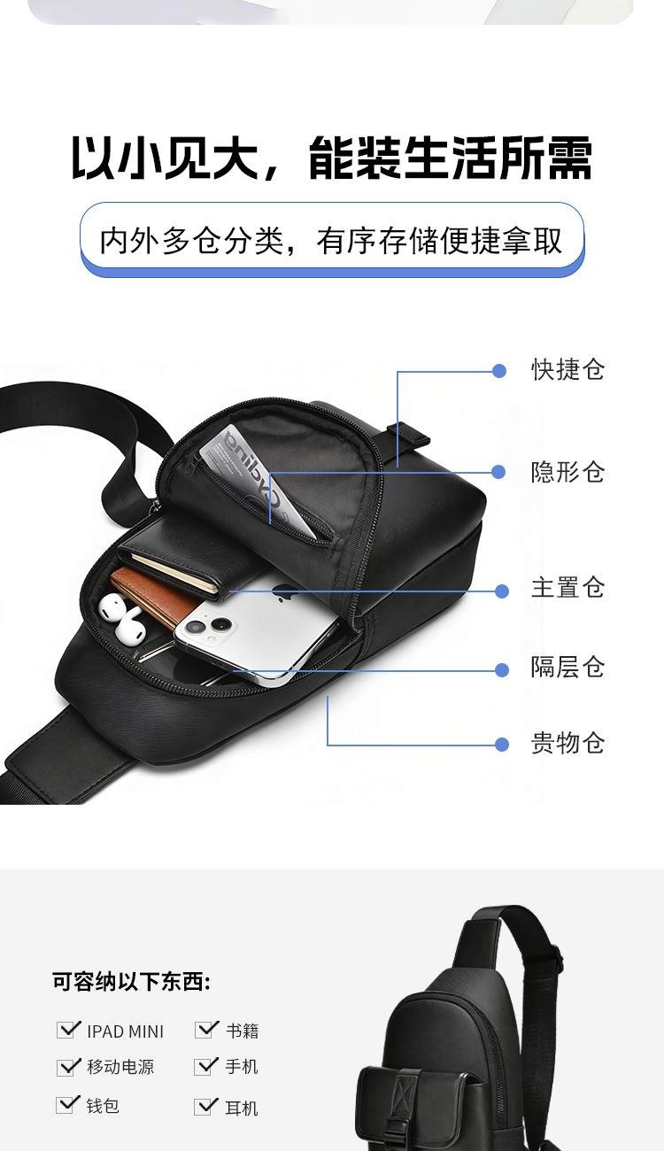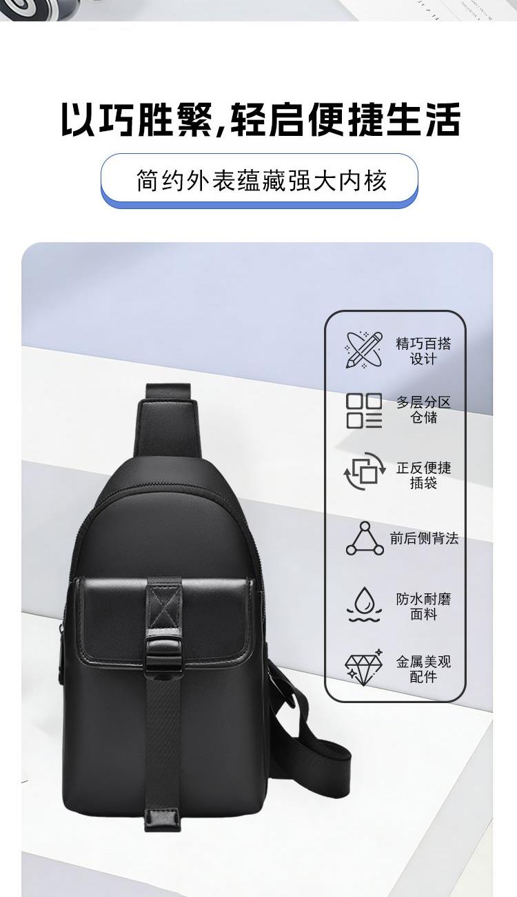 1、小而有范轻潮有型,零感贴身百搭出行 2、合理空间科学布局,解放双手一包搞定 3、高密牛津防水材质,柔韧轻盈防刮耐磨 4、多仓分区收纳有序,随取随放存取便捷 5、人体工学肩带设计,多种背法自由选择 6、金属配件匠心工艺,入微细节品质在线