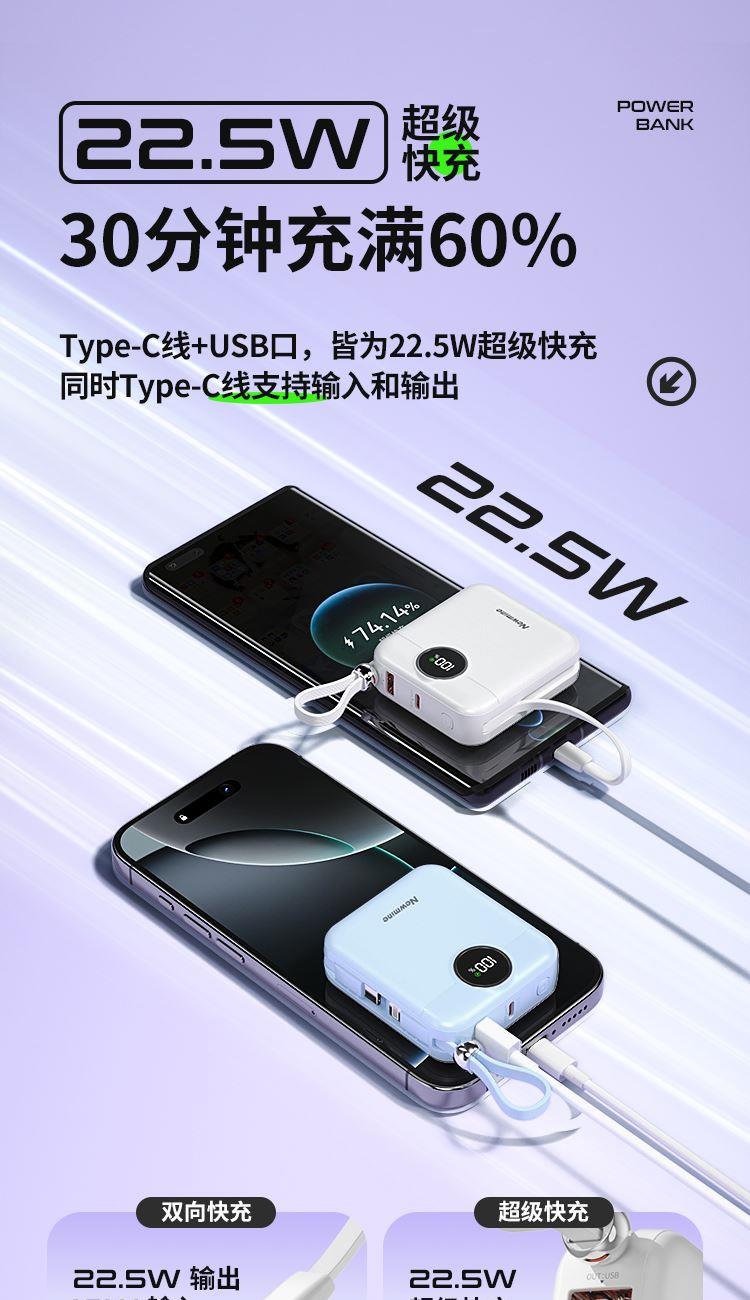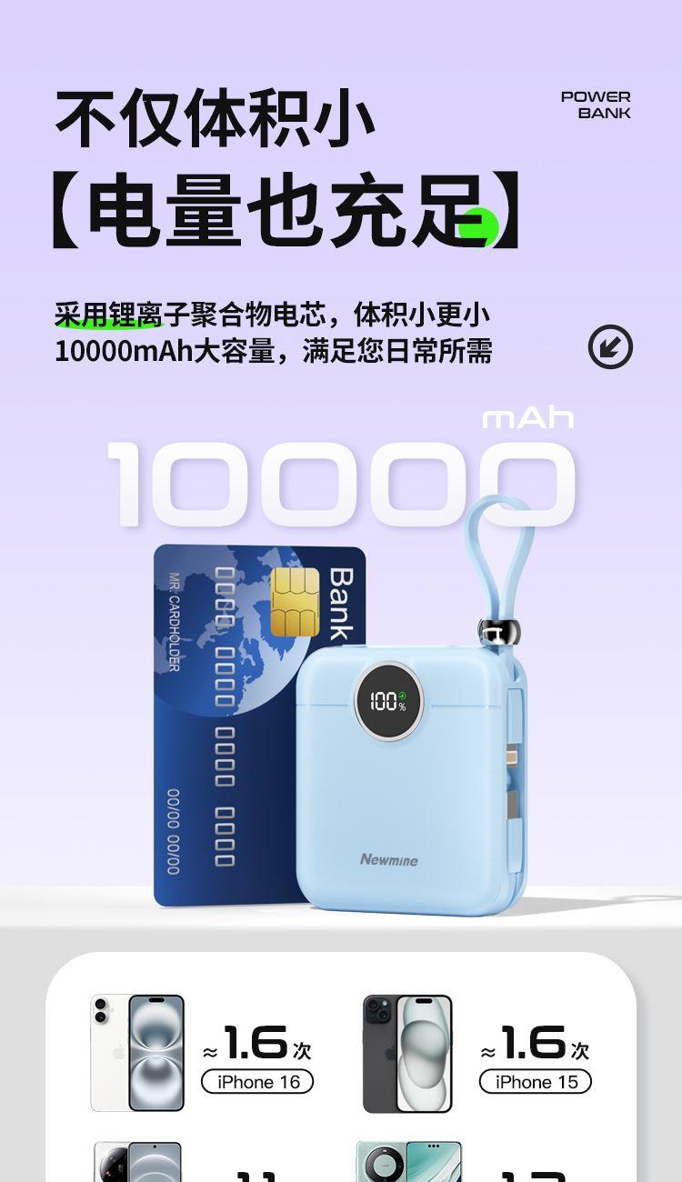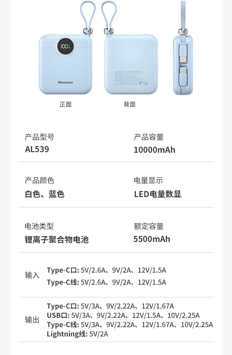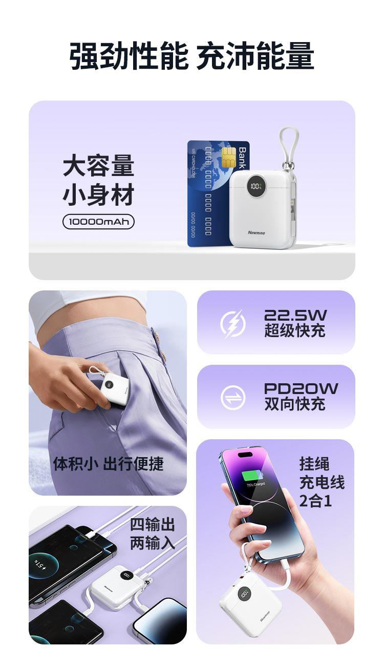 纽曼22.5W自带双线一万毫安充电宝AL539可上飞机3C