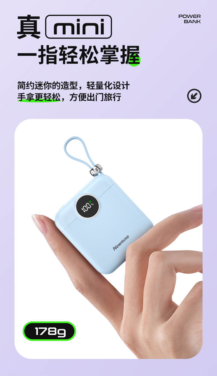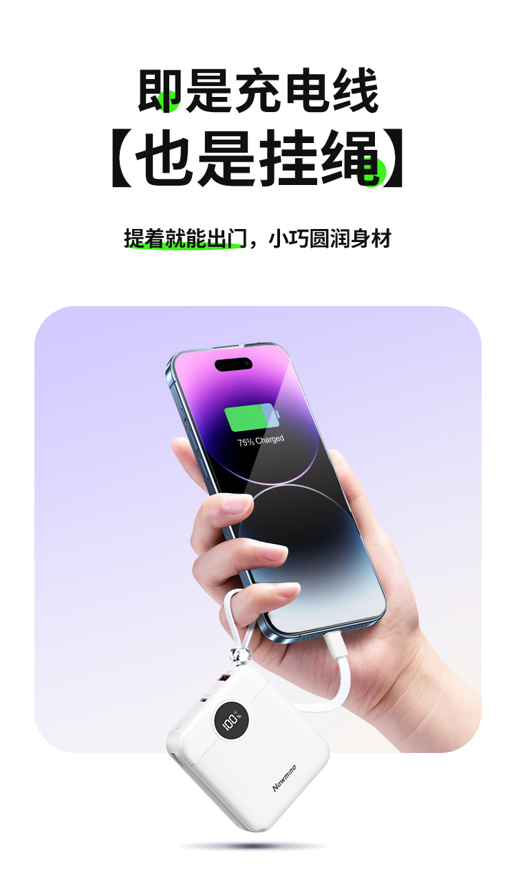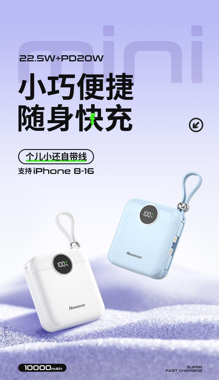 纽曼22.5W自带双线一万毫安充电宝AL539可上飞机3C