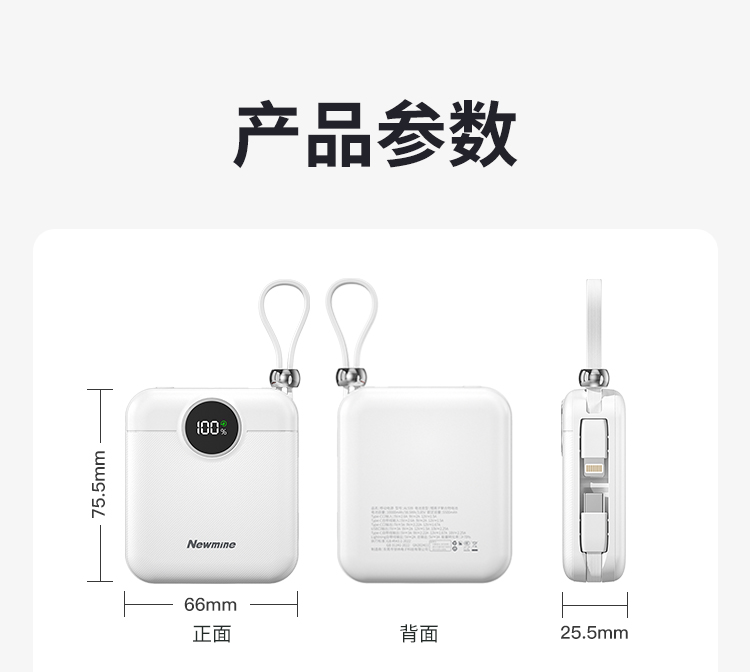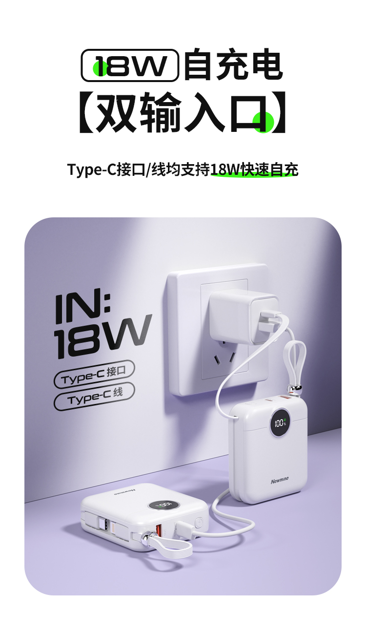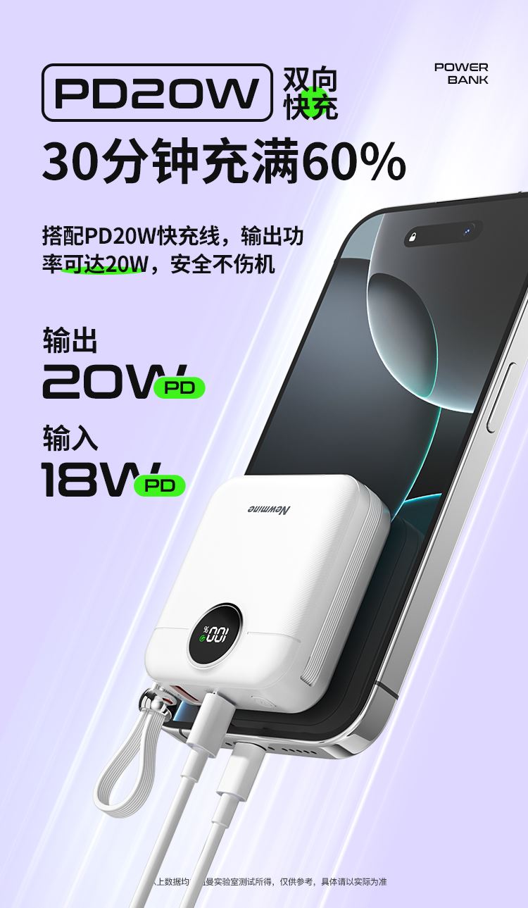 双向快充,自带双线,数显,
