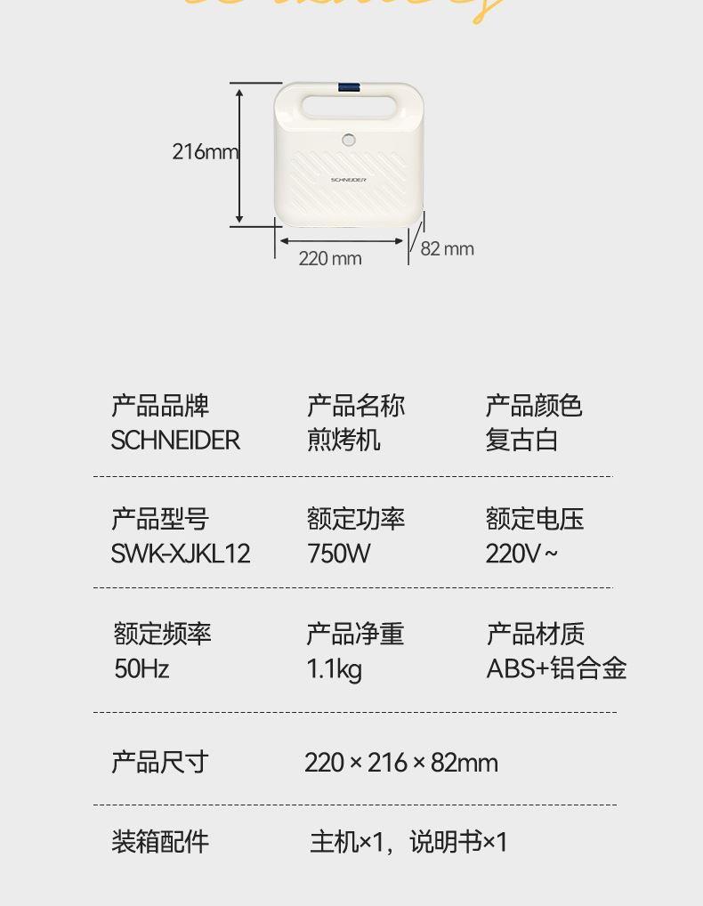 SCHNEIDER三明治早餐机SWK-XJKL12