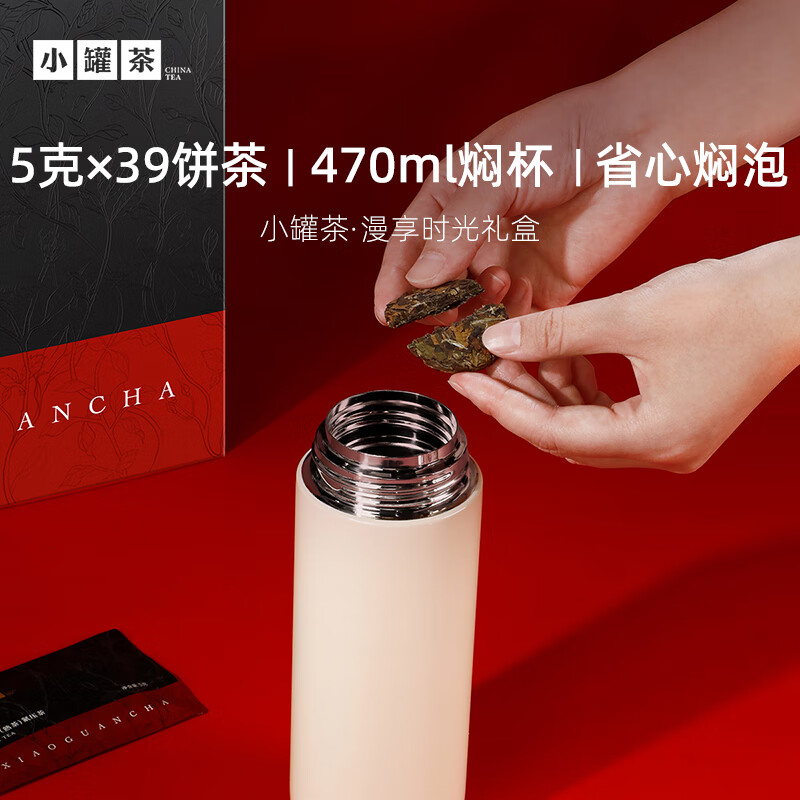 小罐茶-漫享时光礼盒保温焖泡杯寿眉普洱茶叶商务套装具195g