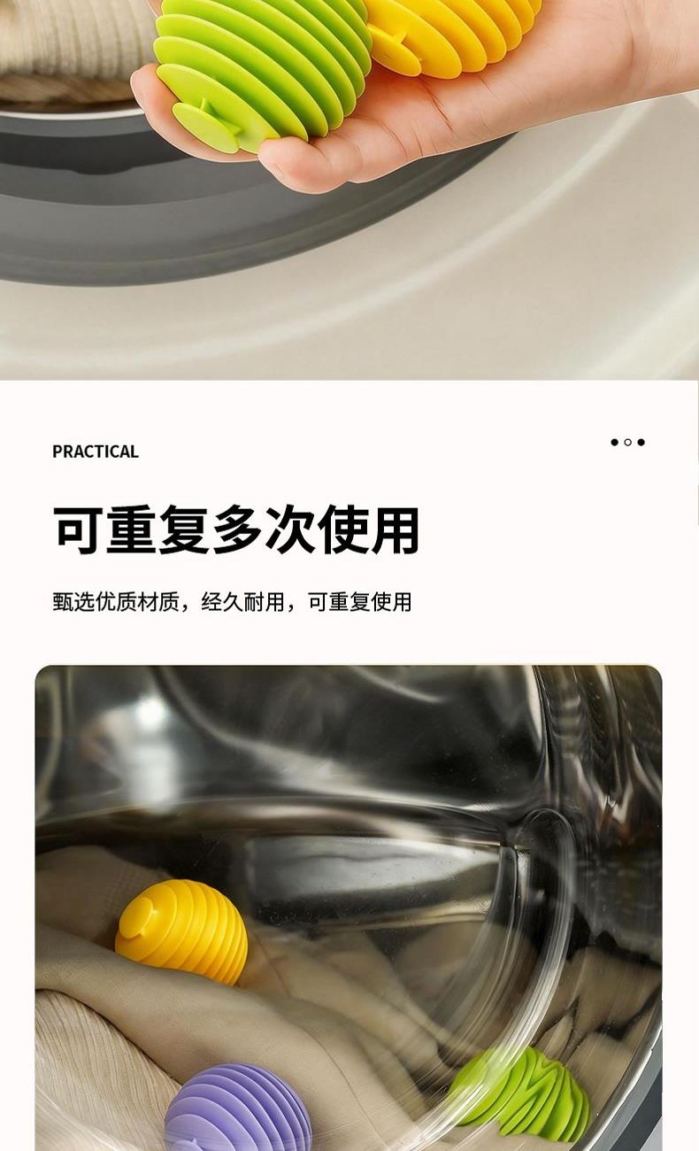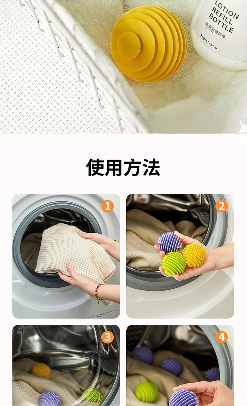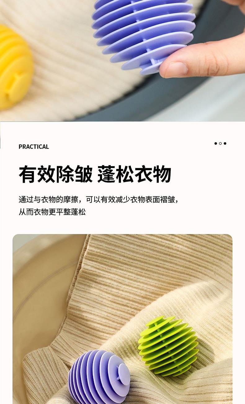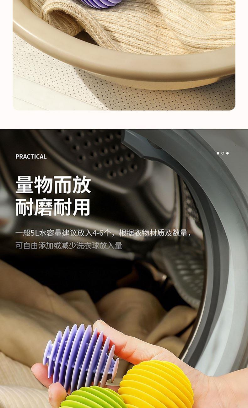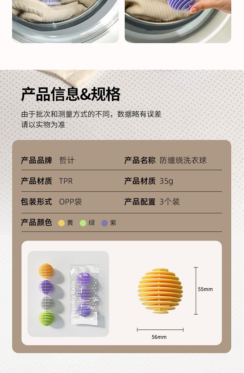 产品配置:哲计软胶防缠绕洗衣球3个 产品型号:XYQ-331A 产品材质:TPR 产品颜色:混色 包装尺寸:200*100*60mm 包装方式:PP袋 单套重量:0.11KG 外箱尺寸:490*390*320mm