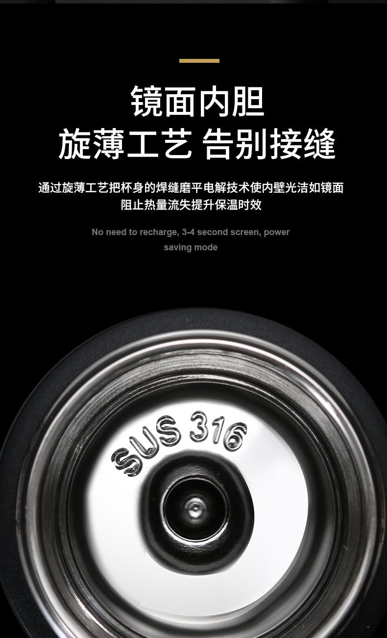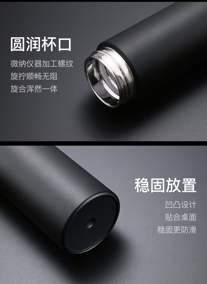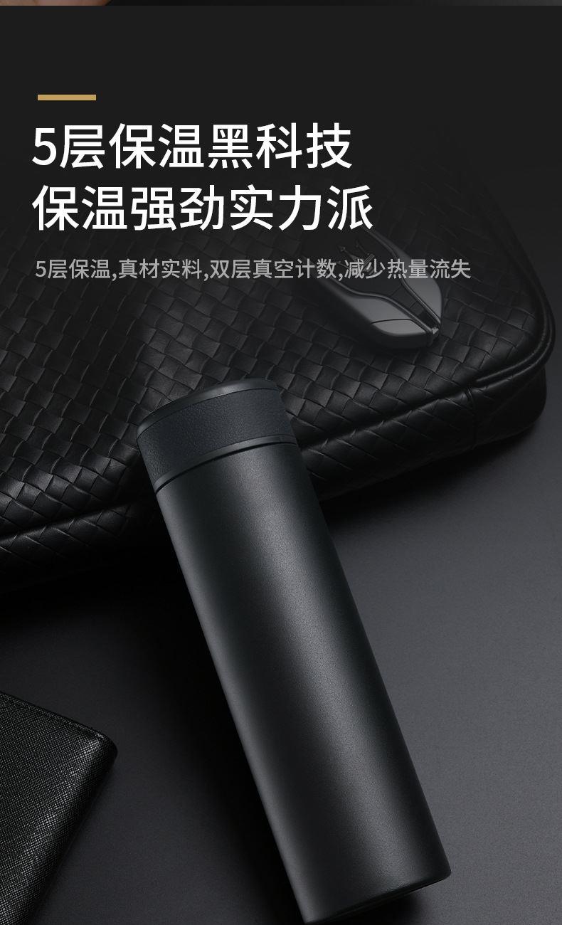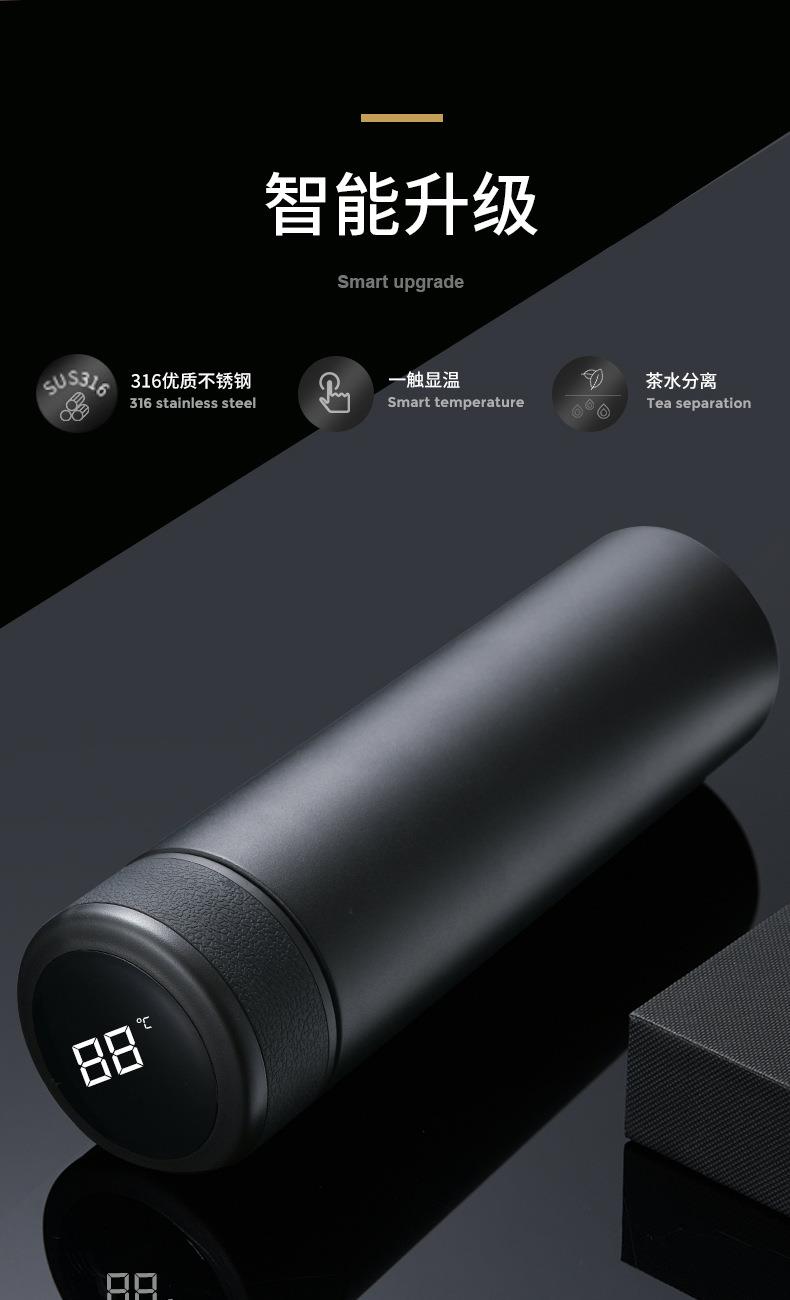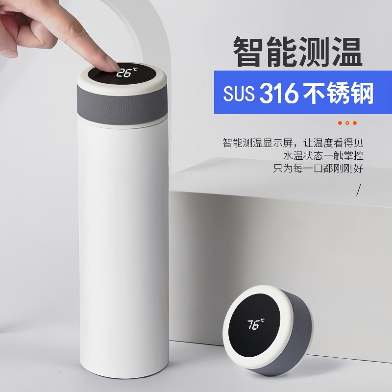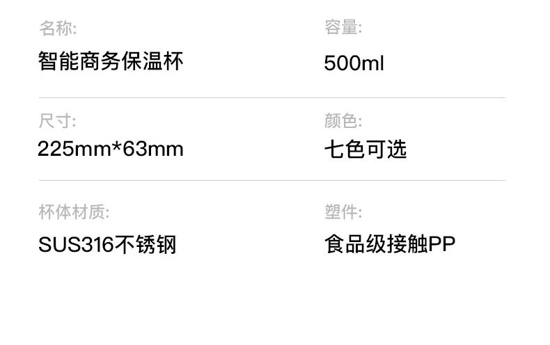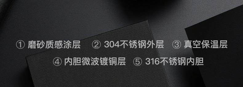 材质:优质316不锈钢 颜色:咖、蓝、红、黑、白 包装:彩盒 品质:精品杯 保温杯容量:500ml •选用优质316不锈钢,高温考漆工艺,无尾真空技术处理。 •杯口圆润光滑,精工细作,食品级PP塑料盖安全无异味。 •磨沙漆面,搭配温显盖配和镜面内胆,雾面质感思腻尔温润。 •未成年人请在大人指导下或告知后使用。