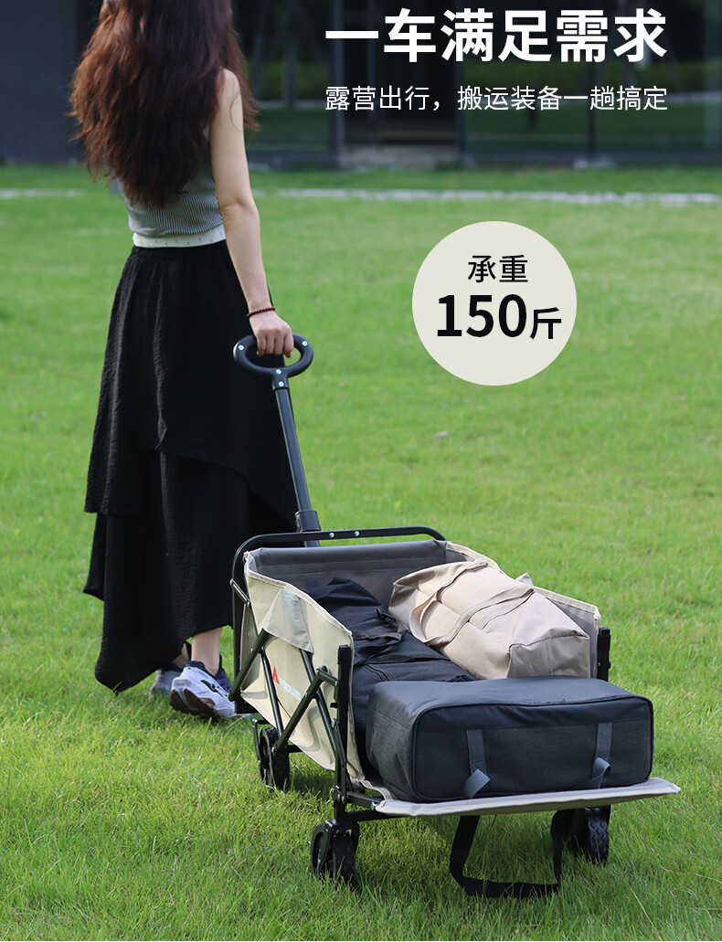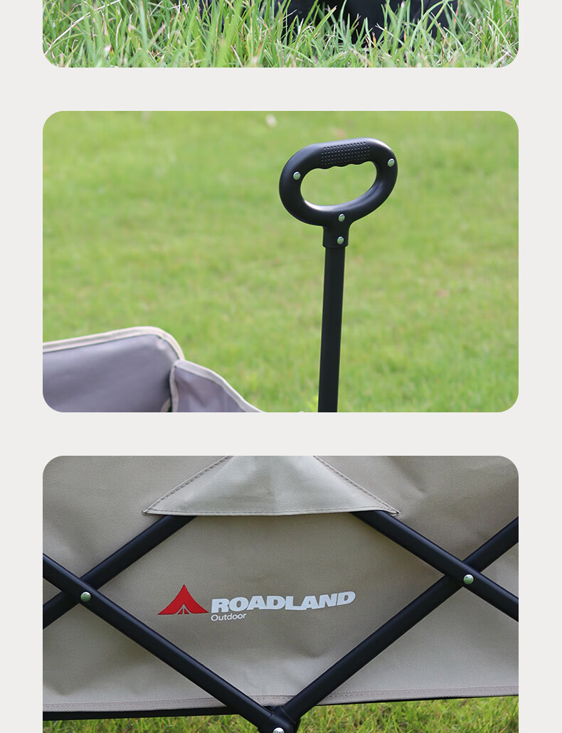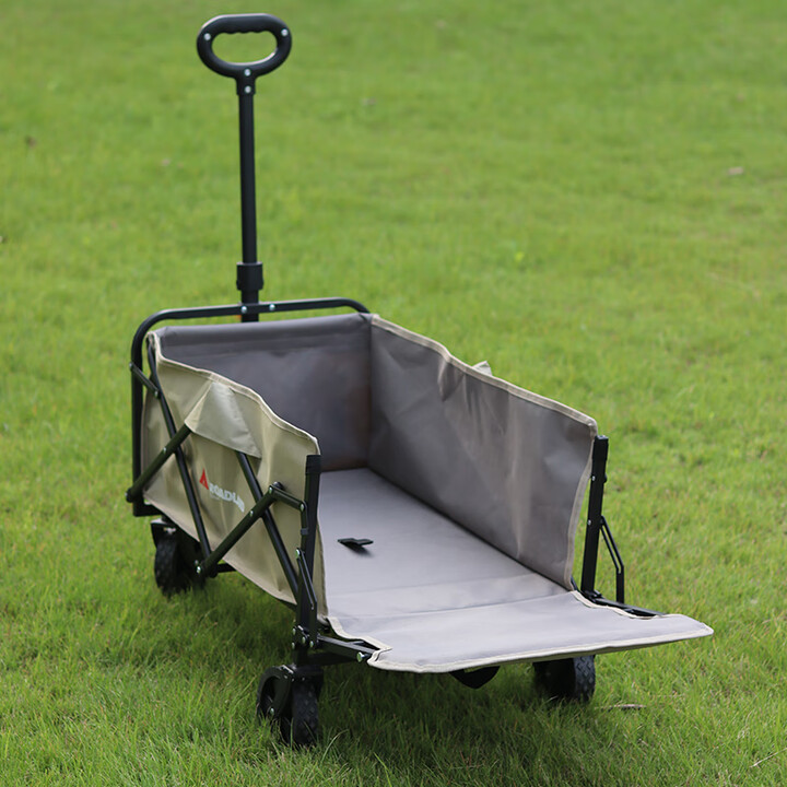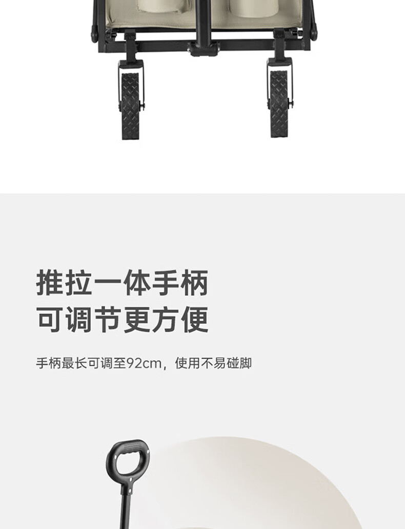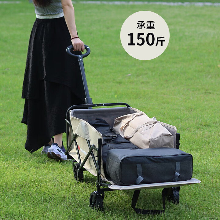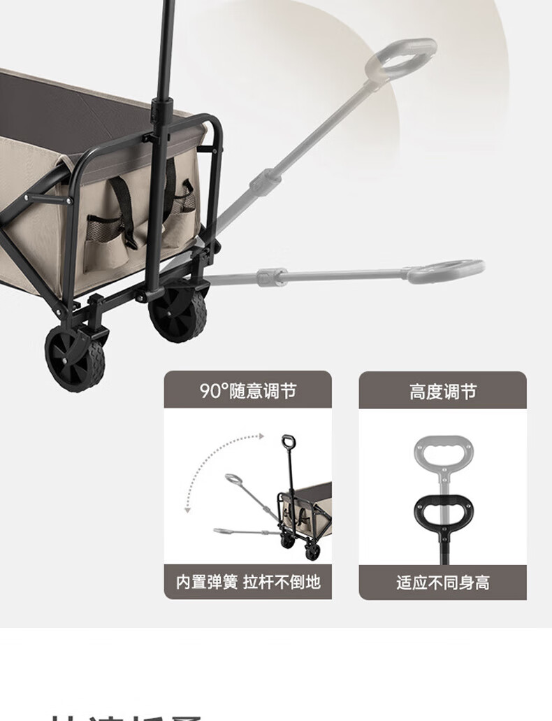 材质:600D牛津布 车架 : 喷塑钢材颜色:卡其+灰色 展开规格尺寸: 75-102*47*68-92cm重量:毛重6.1kg 1、超强承重 2、加粗加厚钢管 3、加粗防水布料 4、3秒折叠便携设计 5、推拉一体手柄