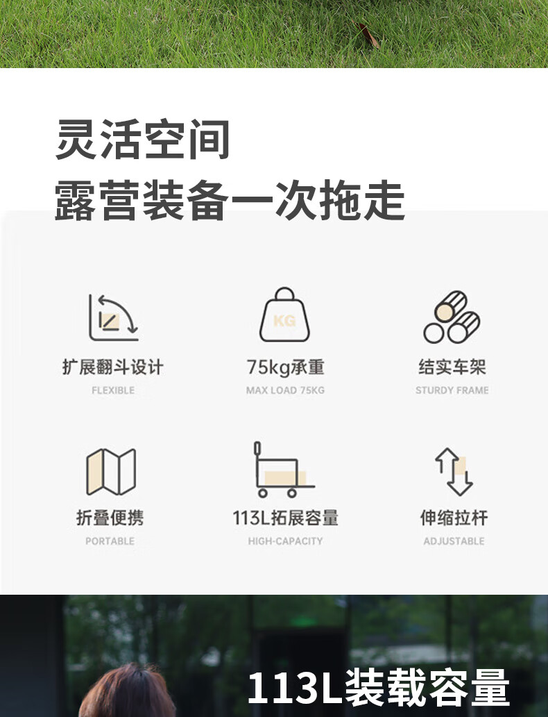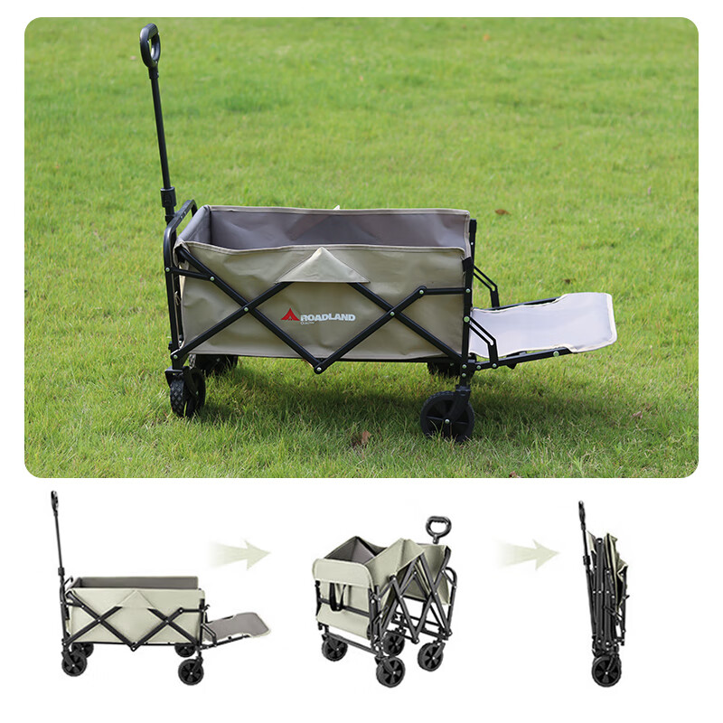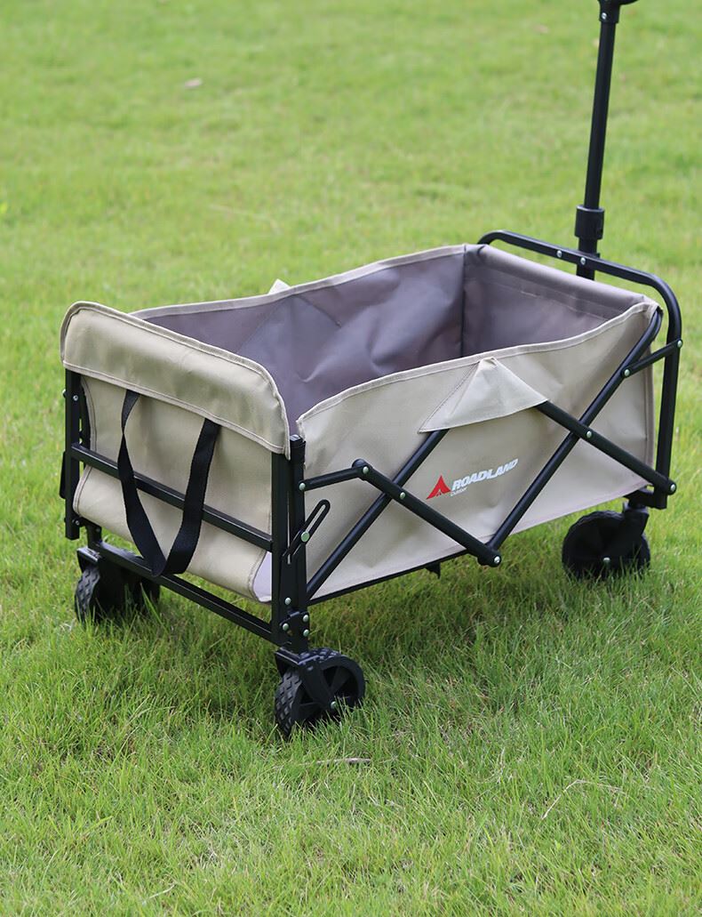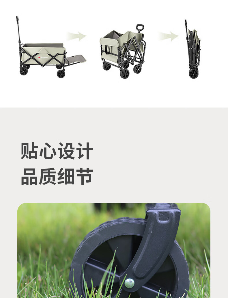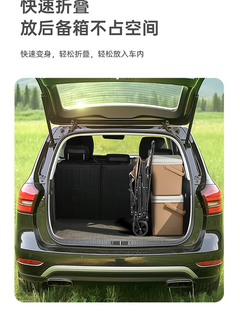 材质:600D牛津布 车架 : 喷塑钢材颜色:卡其+灰色 展开规格尺寸: 75-102*47*68-92cm重量:毛重6.1kg 1、超强承重 2、加粗加厚钢管 3、加粗防水布料 4、3秒折叠便携设计 5、推拉一体手柄