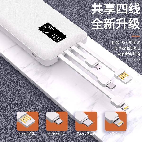 型 号: K91 颜色:黑色,白色 电池 :聚合物电池 电池类型 :聚合物电芯 容量:10000mAh/20000mAh 材质 :ABS+PC 尺寸 :140*68*28mm 功能特点 简约设计风格,时尚大气; 黑白经典商务配色可选 10000mAh锂电池,澎湃动力; 自带四线,支持市面上所有手机充电; 一输入三输出,支持苹果15。