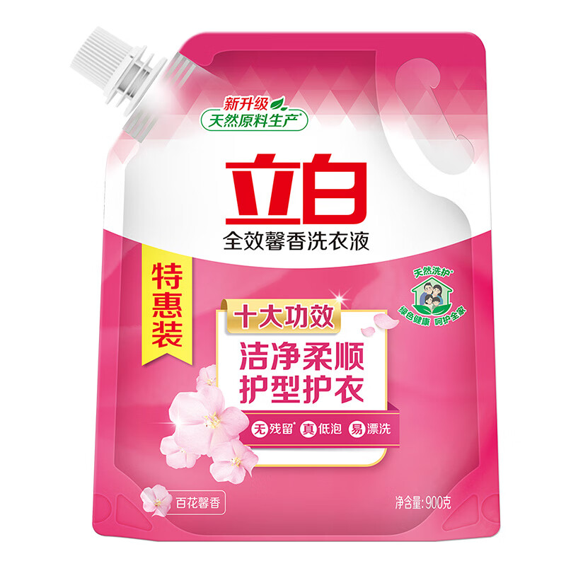 配置: 立白全效馨香洗衣液900g*1袋 立白卫仕除 菌洗衣液100g*3袋 立白新金桔洗洁精408g*2瓶 超威强效洁厕净500g*1瓶
