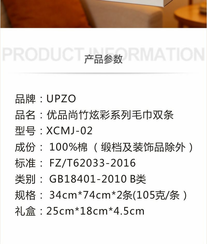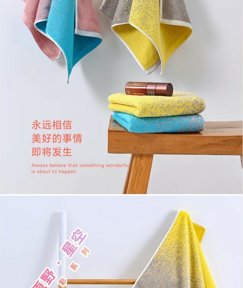 成份: 精梳棉 标准: FZ/T62033-2016 类别: GB318401-2010 B类 规格: 34CM*74CM*2 条 (105g每条) 礼盒: 25×18×4.5cm 时尚靓丽外观设计 采用优质精梳棉 先染色后提花织造而成 集外观美丽和优良品质为一体 两个颜色的设计取星空与原野为元素。