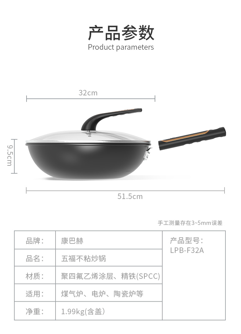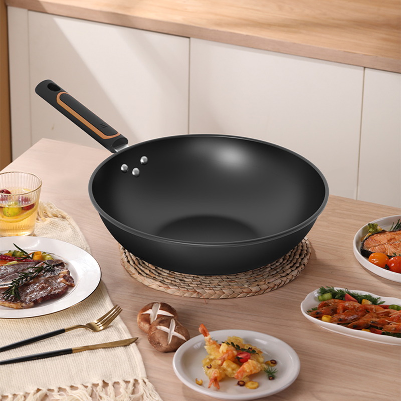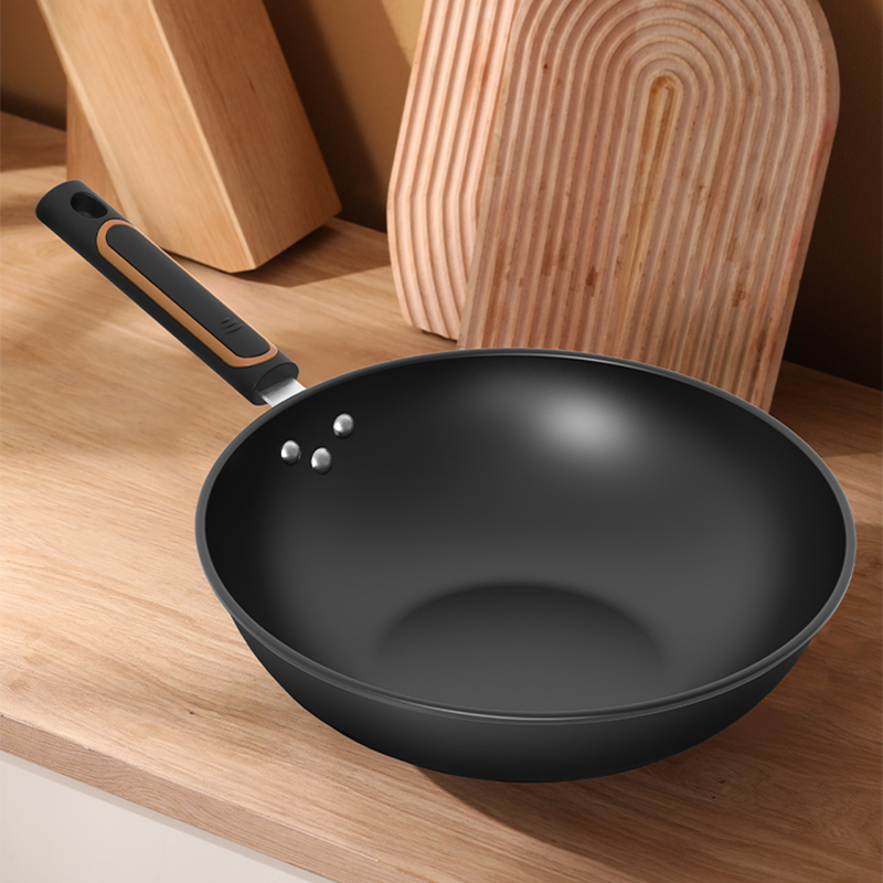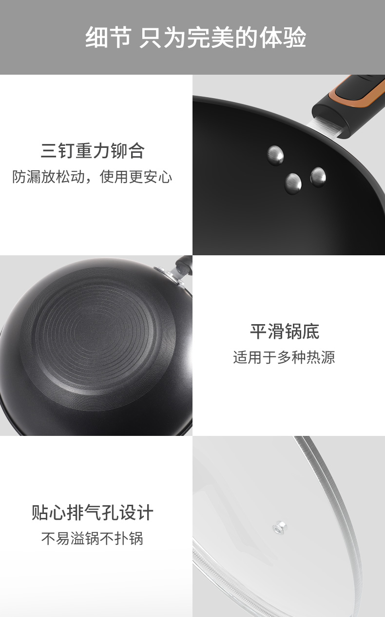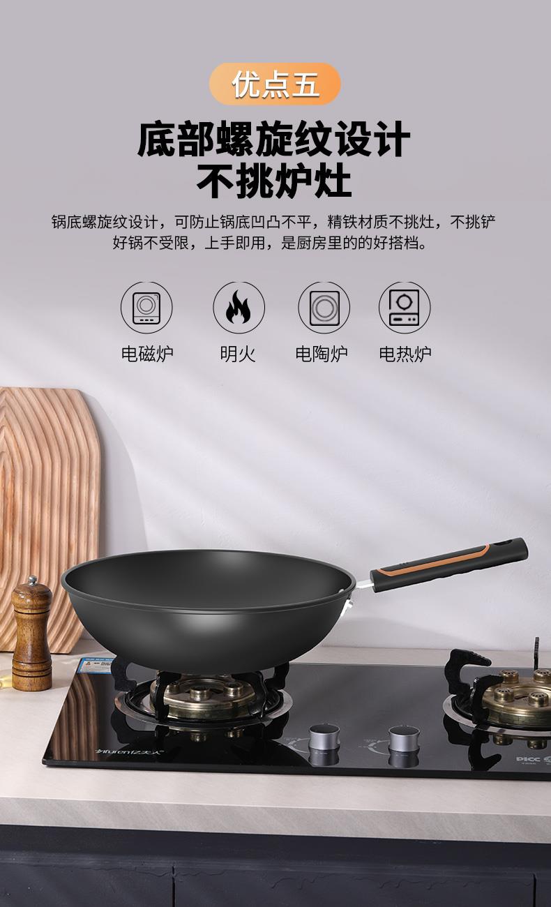 ◎翻炒不易粘,爆炒更随心。翻炒不易粘,在少油甚至是无油的条件下,都可以达到不易粘的效果,轻松翻面,爆炒随心,让烹饪更简单。