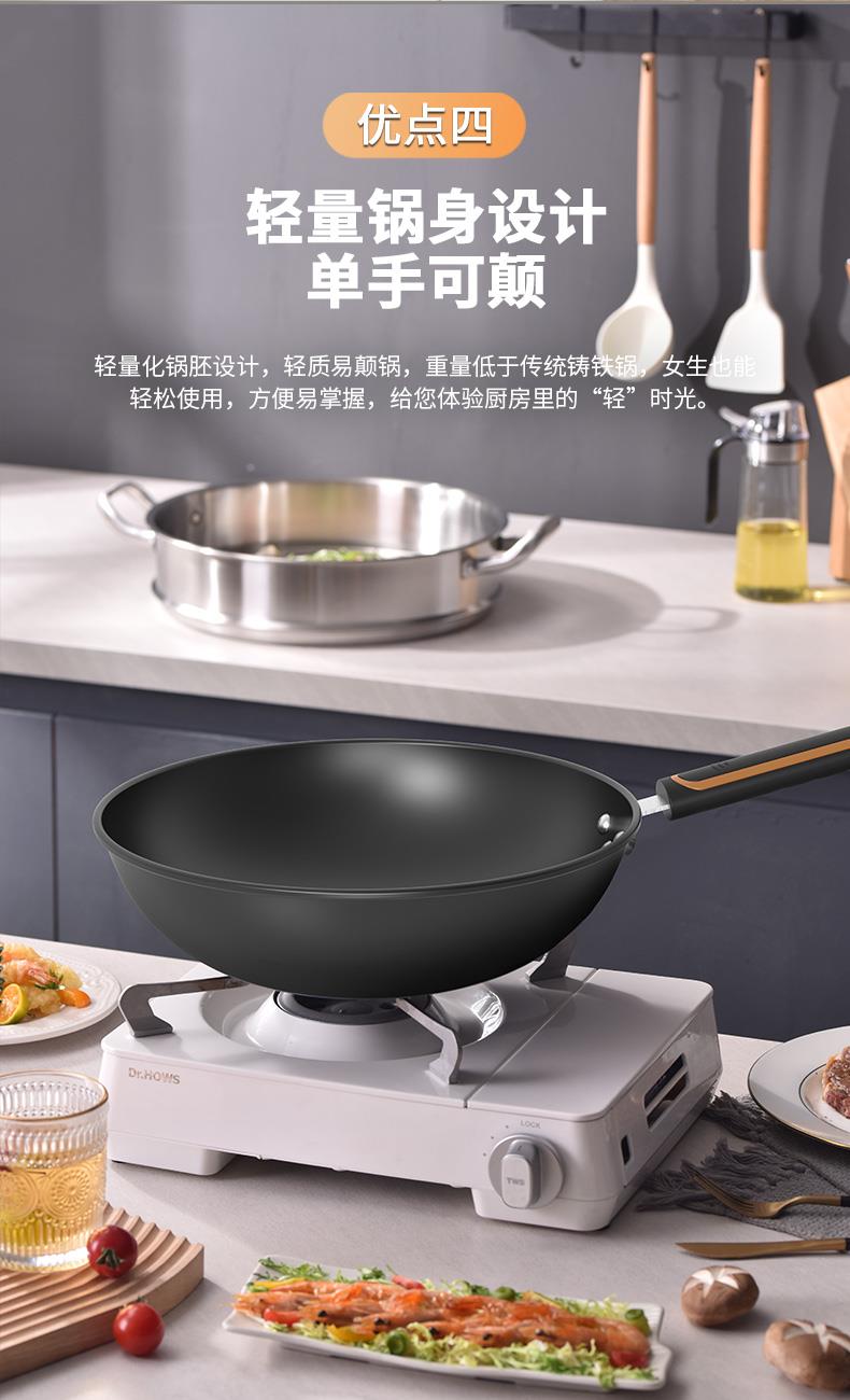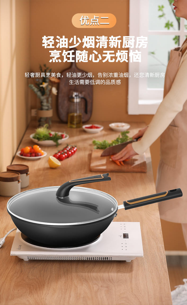 ◎实力烹饪,畅享轻油生活。优质精铁基材,健康不粘技术,少油即可烹饪。煎蛋、摊饼、炒时蔬、煎炒两用、样样拿手,尽情玩转厨房美味。