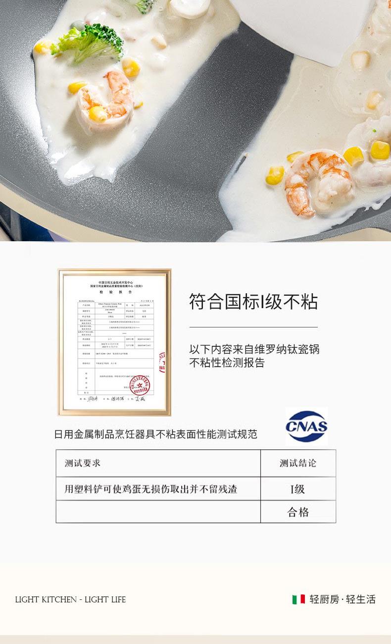 规格:18cm 材质:铝合金+陶瓷 单个尺寸:405*240*135 1、国标1级不粘,钛不粘不糊底 2、钛瓷革新材质,婴童级接触用 3、1.5kpa微压锅盖,省时入味健康 4、底部穹顶意式设计,时尚又节能 5、可进洗碗机,释放懒人天性。