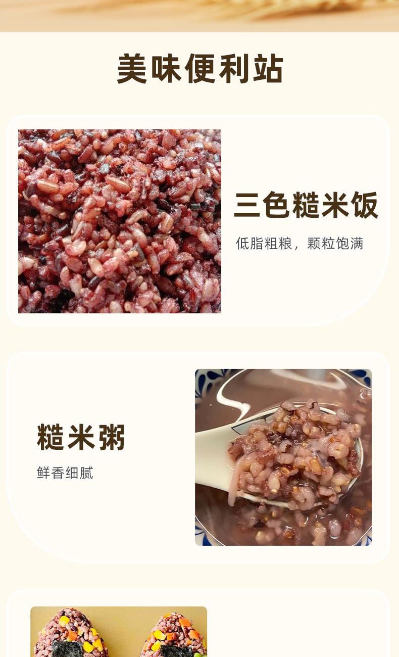 1、世界硒都,恩施原产,严选好食材,膳食均衡搭配,健康心意之选; 2、三色糙米由红米、黑米、糙米科学搭配而成; 3、低脂高纤维,可粥可饭,轻食代餐,可做健身低脂餐。