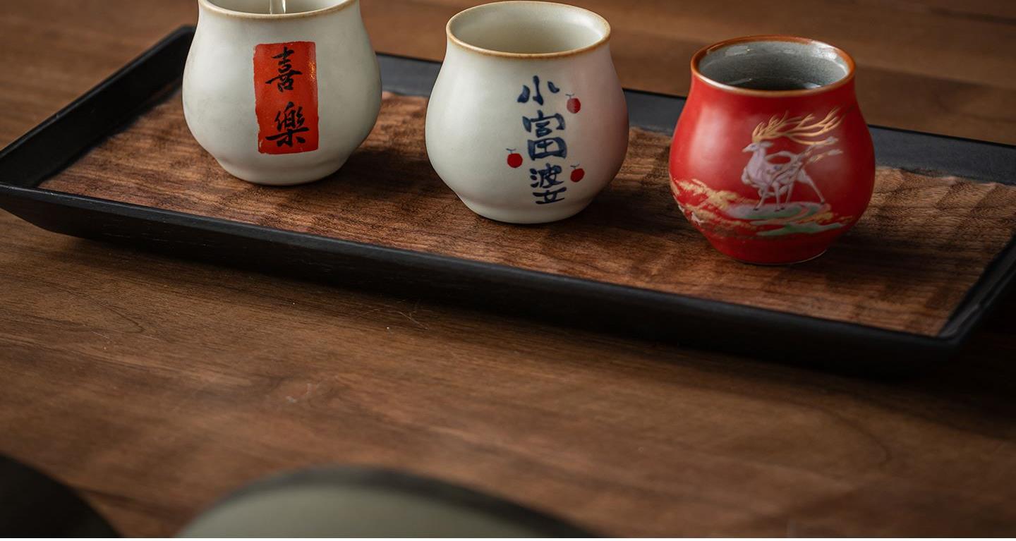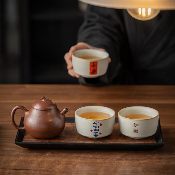 配置:茶杯*3, 尺寸:富贵吉祥杯7.8*4.7cm 容量100ml, 罗汉三星杯5.4*5.1cm 容量55ml, 礼盒:17*11.8*19cm。