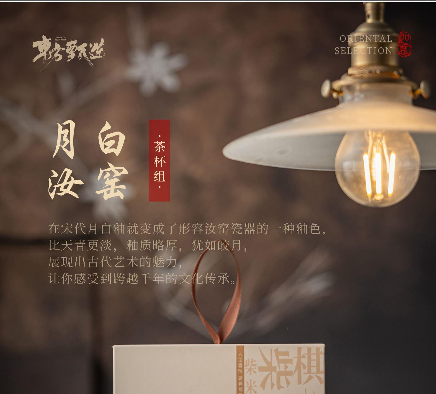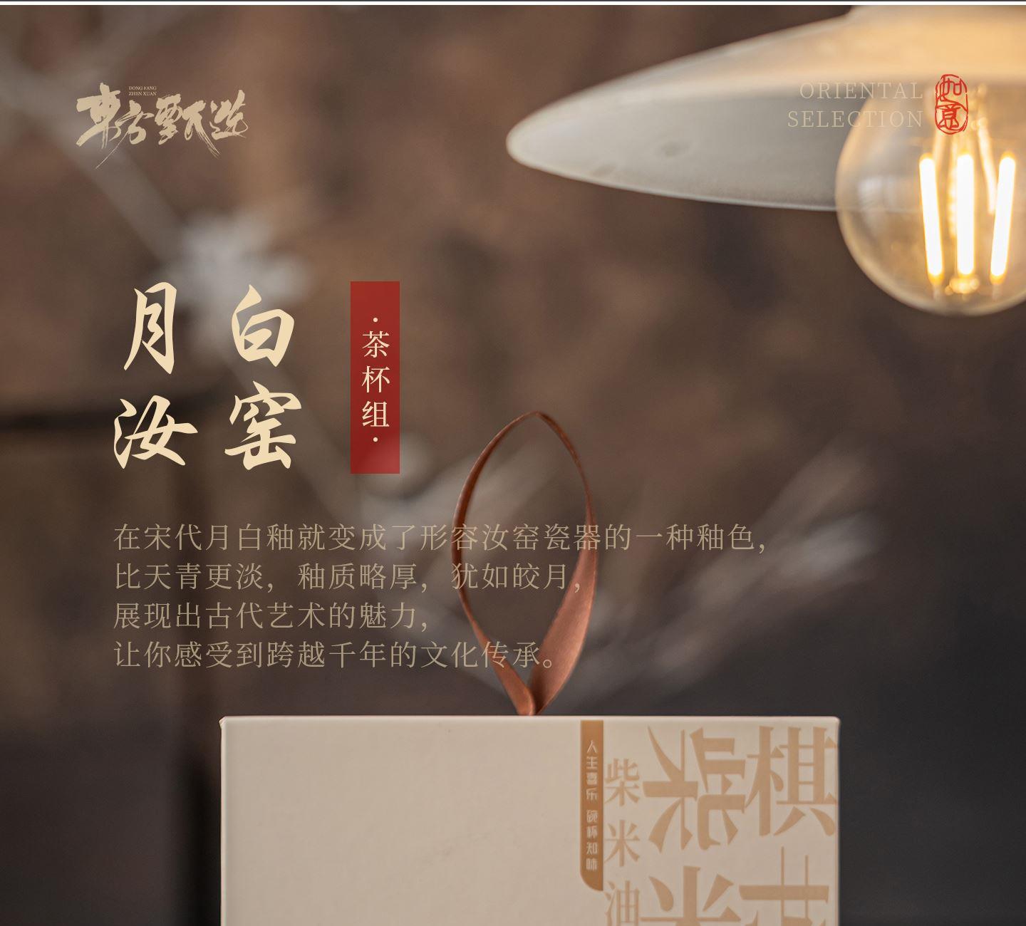 尾桥下窑陶瓷月白汝窑主人杯小套装新年节日伴手礼开业会议赠品