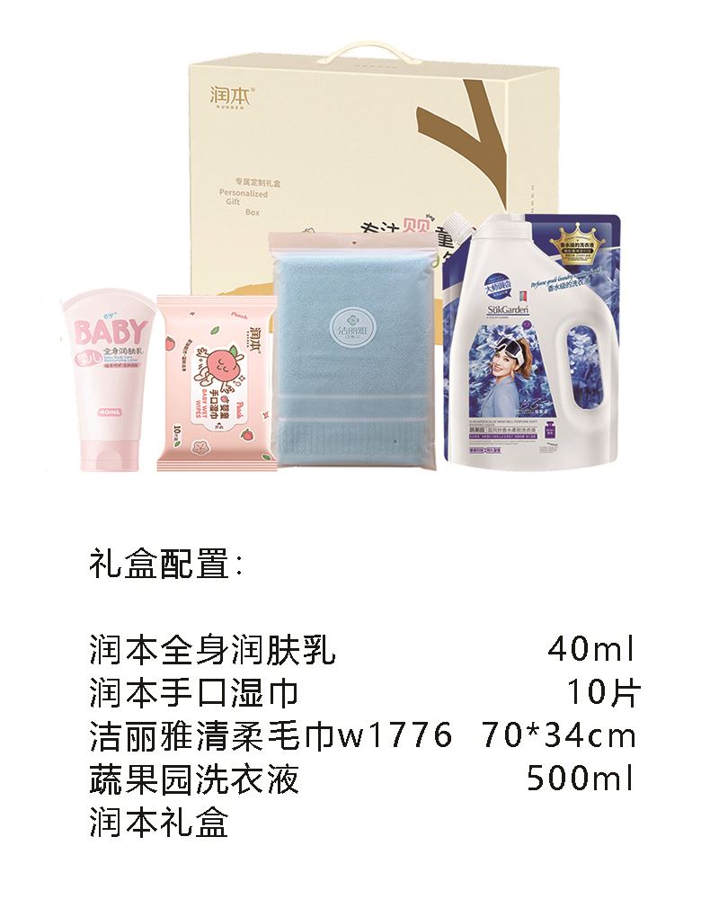 润本全身润肤乳 40ml 润本手口湿巾 10片 洁丽雅清柔毛巾w1776 70*34cm 蔬果园洗衣液 500ml精美礼盒