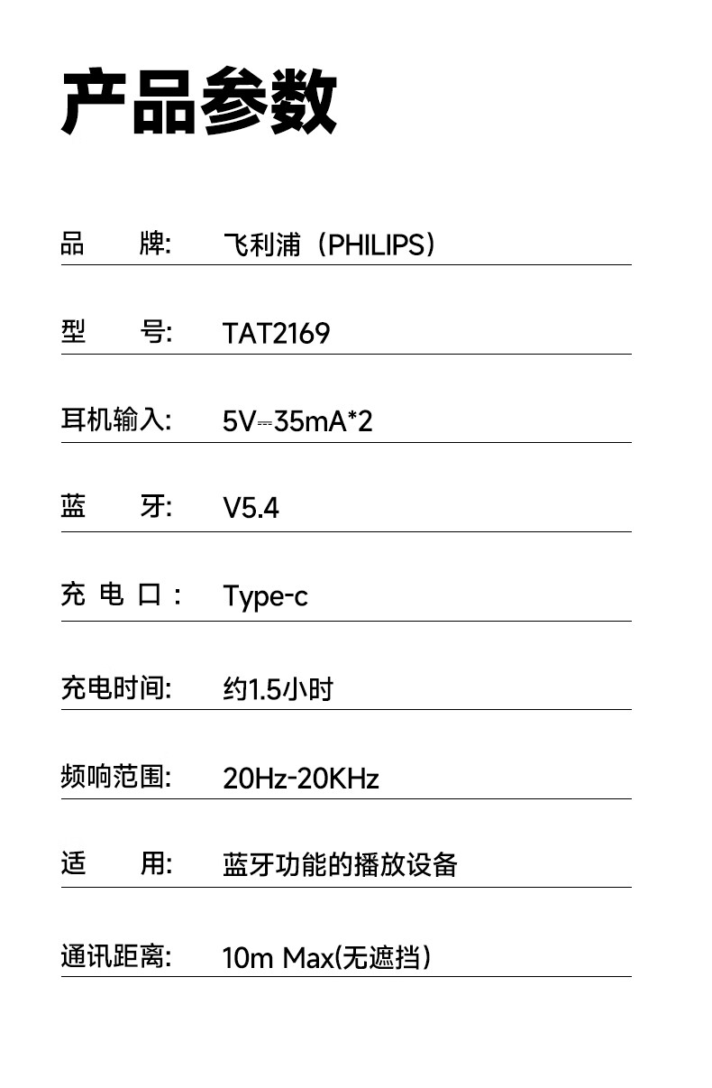 飞利浦真降噪蓝牙耳机TAT2169