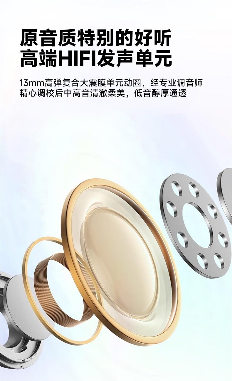 4..13mm 复合膜动圈单元,高解析力音质,立体环绕音效;