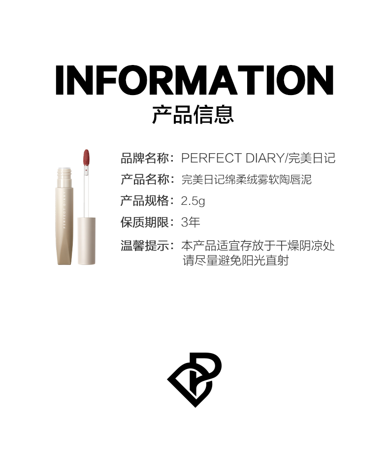 PERFECTDIARY绵柔绒雾软陶唇泥2.5g