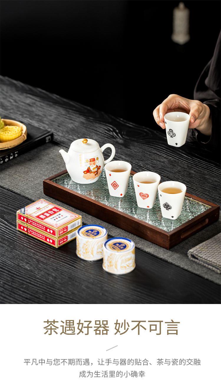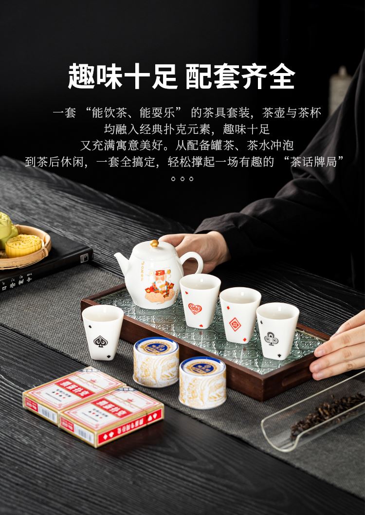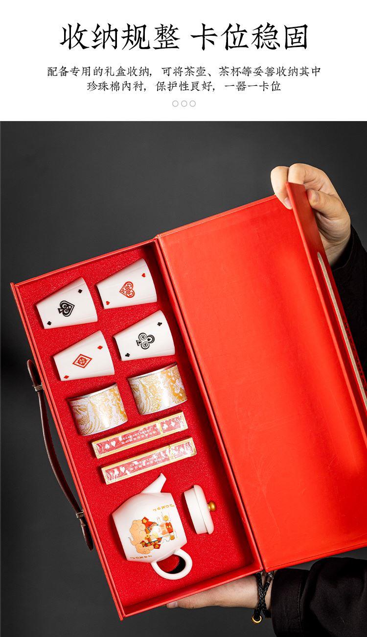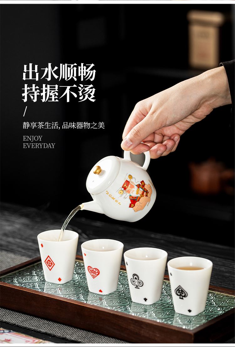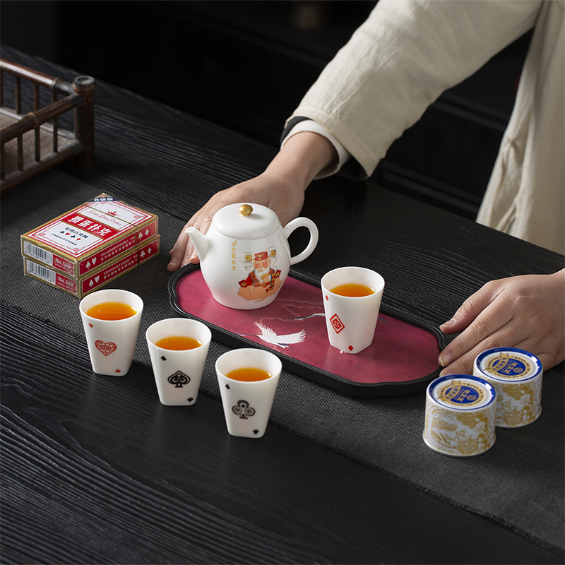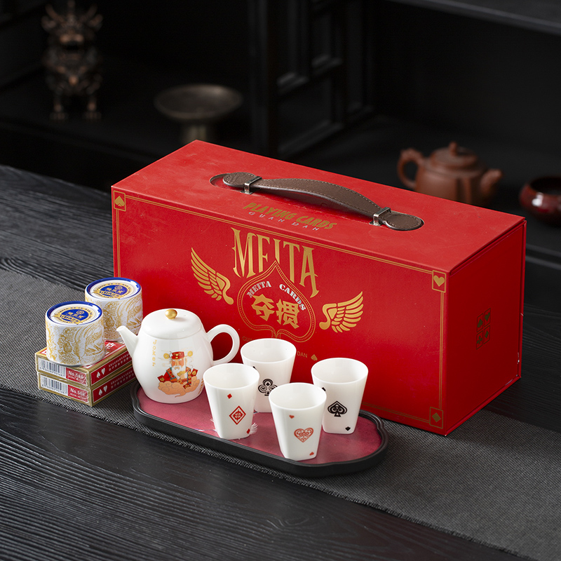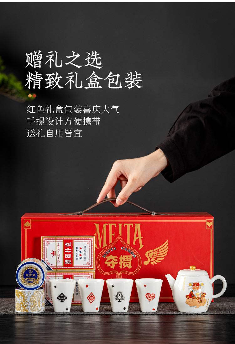 云博陶瓷羊脂玉瓷掼蛋组合养生茶套装户外扑克牌一壶四杯商务礼品