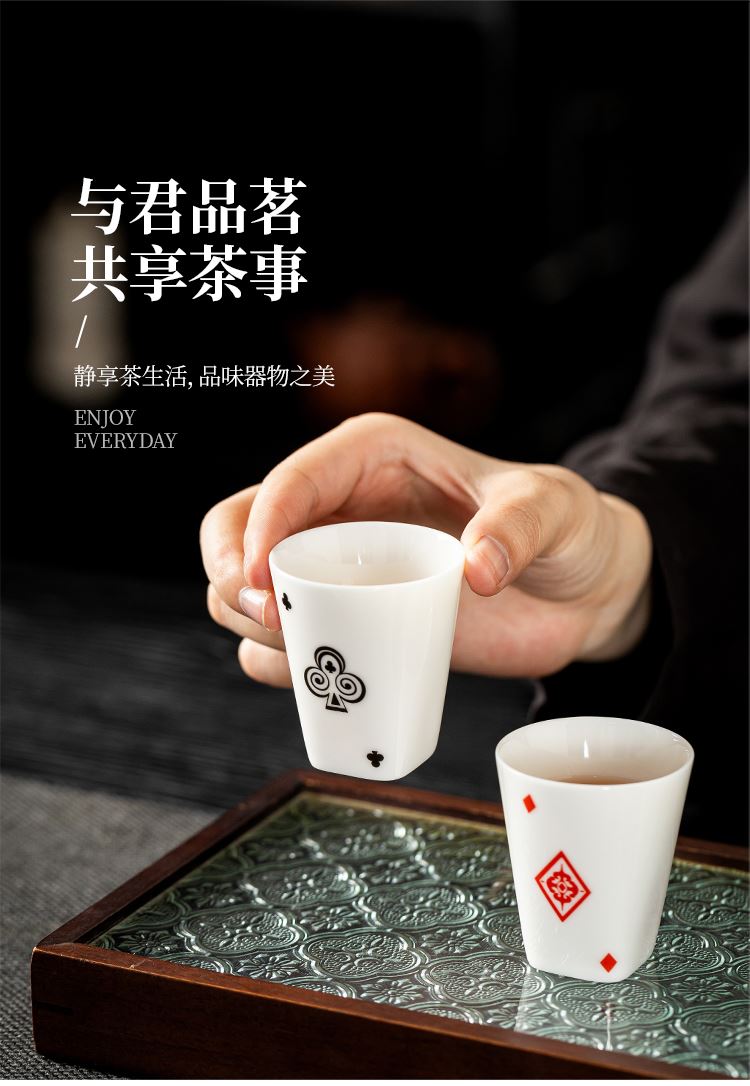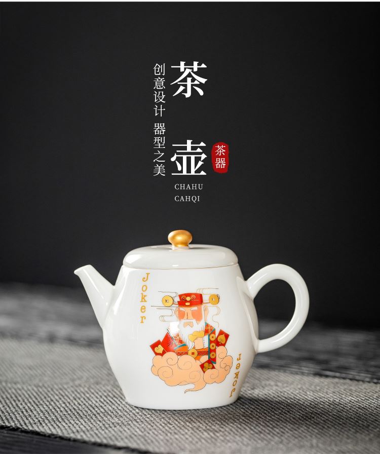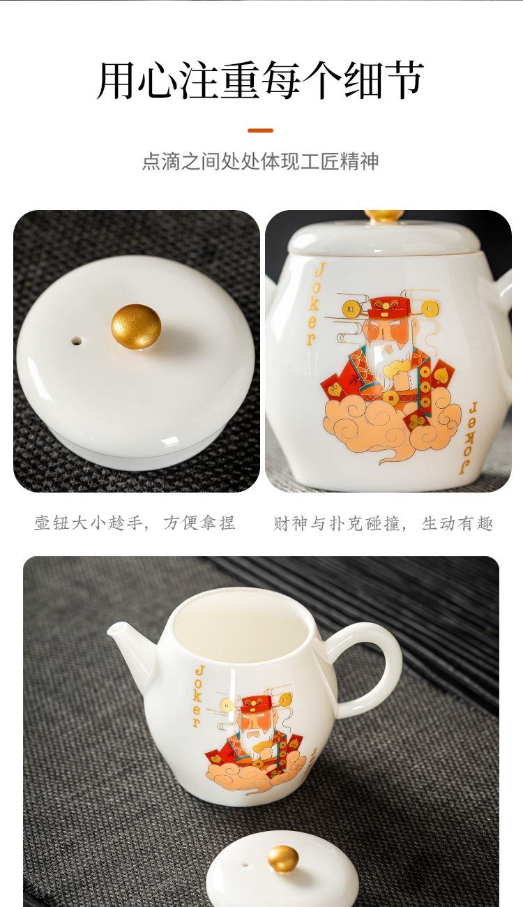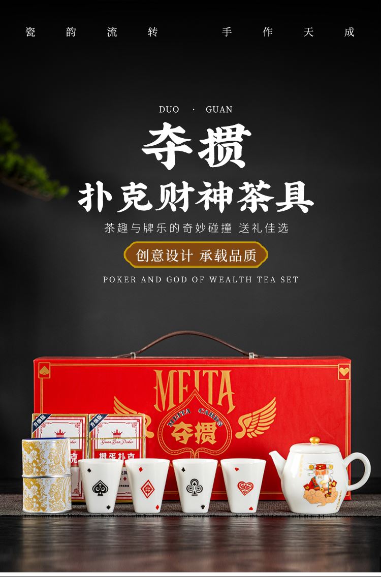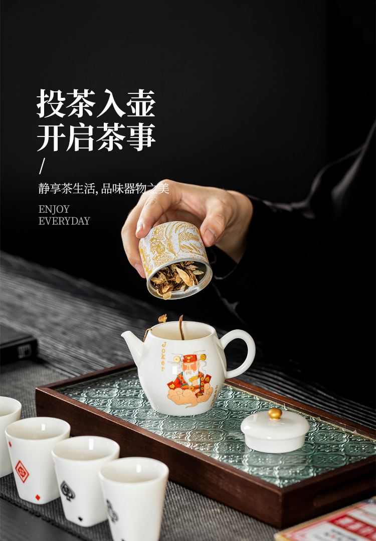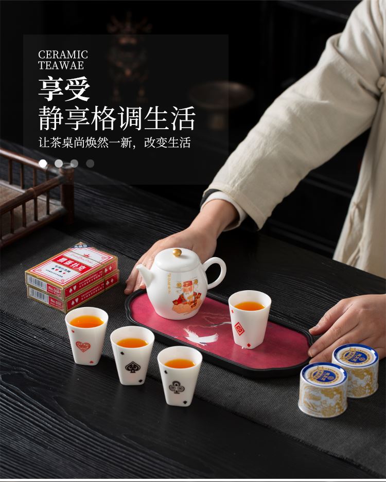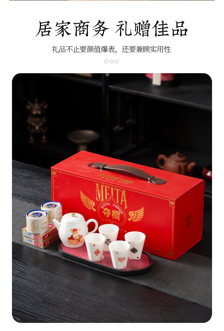 云博陶瓷羊脂玉瓷掼蛋组合养生茶套装户外扑克牌一壶四杯商务礼品