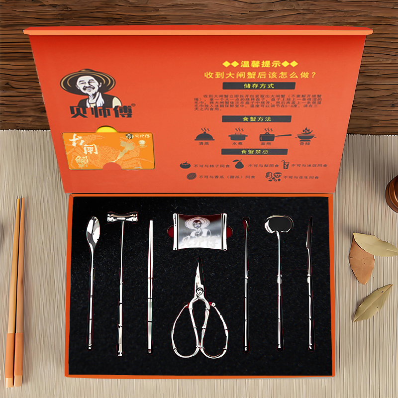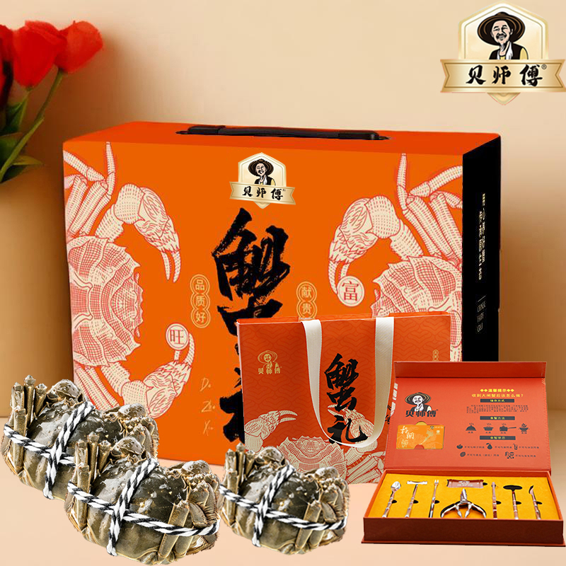 产品规格: 公蟹:5.0两*5只 母蟹:4.0两*5只 卡套形式:精美提货卡+品蟹工具八件套+精美礼盒 实物附赠:食蟹工具、蟹醋、姜茶、紫苏、保温冰袋。 售后承诺:阳澄湖空运直达,死蟹、残蟹包赔。 简介: 贝师傅大闸蟹其创始人贝建国先生是阳澄湖蟹传统养蟹人,从事养蟹近四十年。坚持以玉米、小鱼、田螺等传统饲料喂养保证大闸蟹能够拥有良好的生长环境。在苏州市阳澄湖核心水域拥有广阔的养殖基地。因此真正实现了原产地发货。把美味的大闸蟹从阳澄湖直接送到美食者的餐桌。