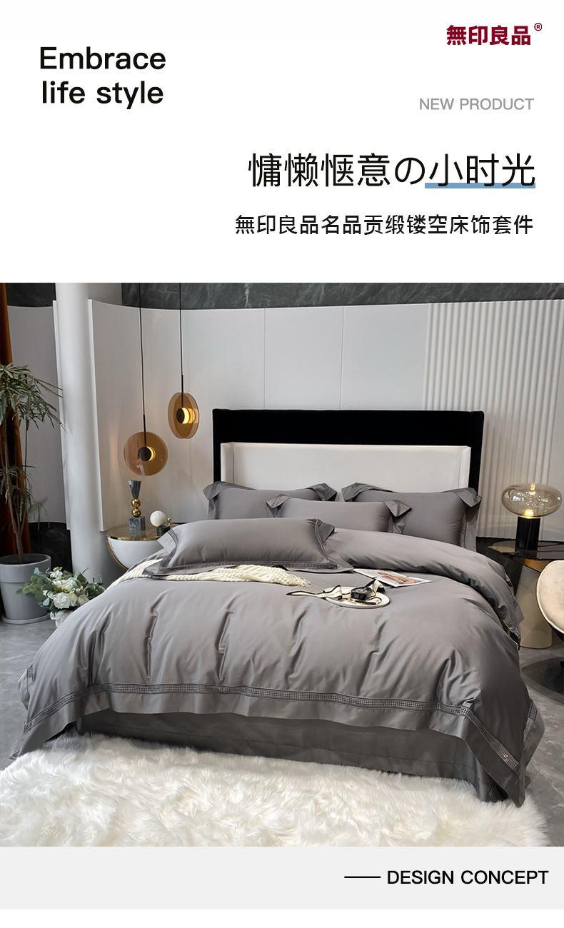 無印良品素品贡缎镂空床饰套件WYLP-TJ5063