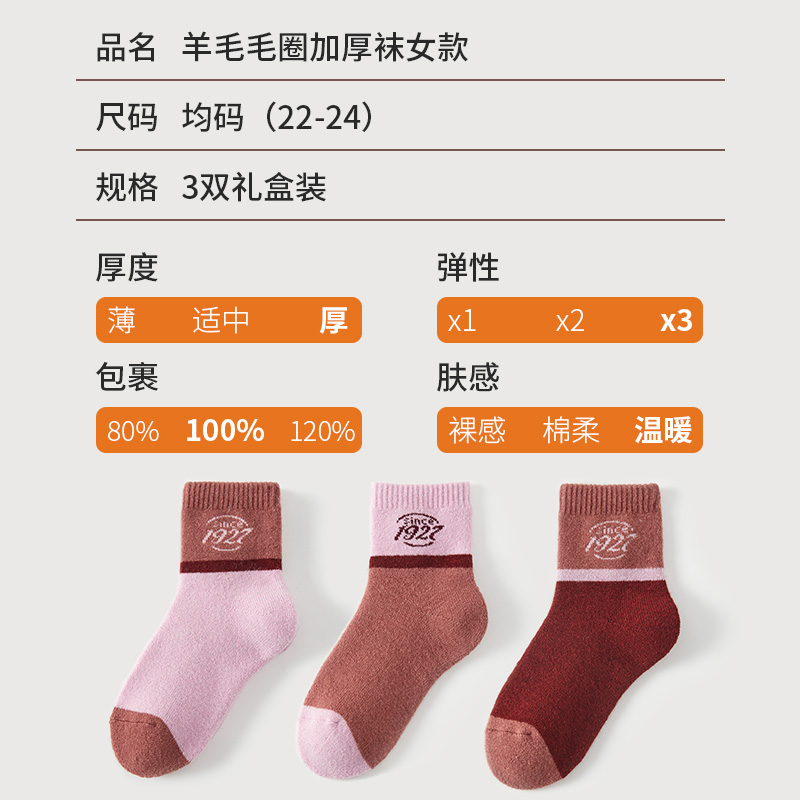 恒源祥羊毛毛圈加厚袜女款3双装HYX067WZ