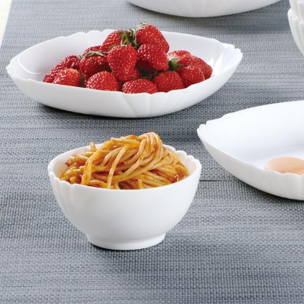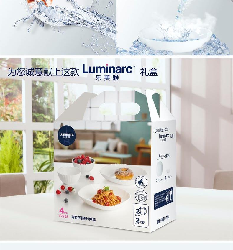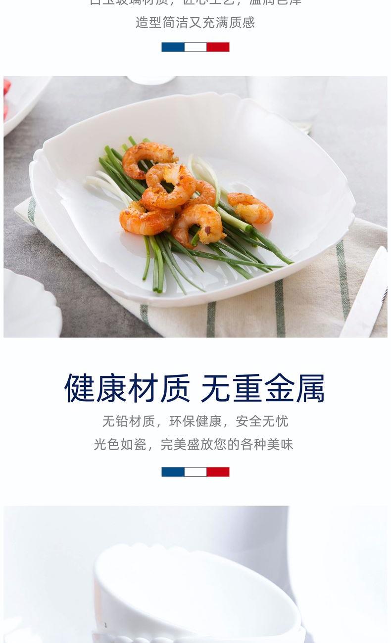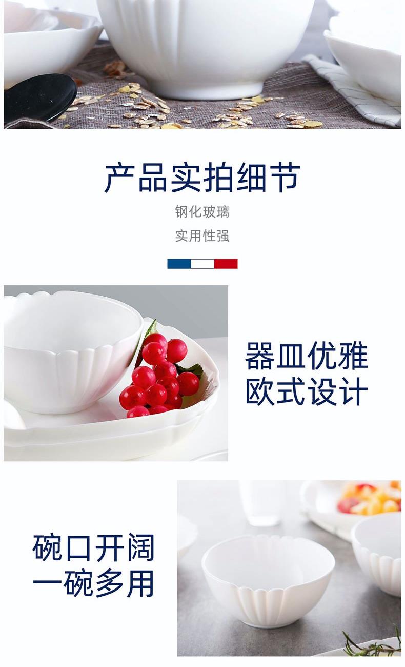 套件组成:饭碗12cm*2+深盘22cm*2 材质:白玉玻璃 工艺:钢化工艺 包装:彩盒 外箱尺寸:438*386*246mm 毛重:1.4kg/8.8kg 特点: 1.无铅玻璃材质,环保、健康 2.全钢化工艺,抗震耐刮擦,耐温差120°C,微波炉、洗碗机、皆适用 3.无孔表面,易冲无残留,减少细菌产生 4.法式设计, 质薄轻巧,方便收纳,节省空间